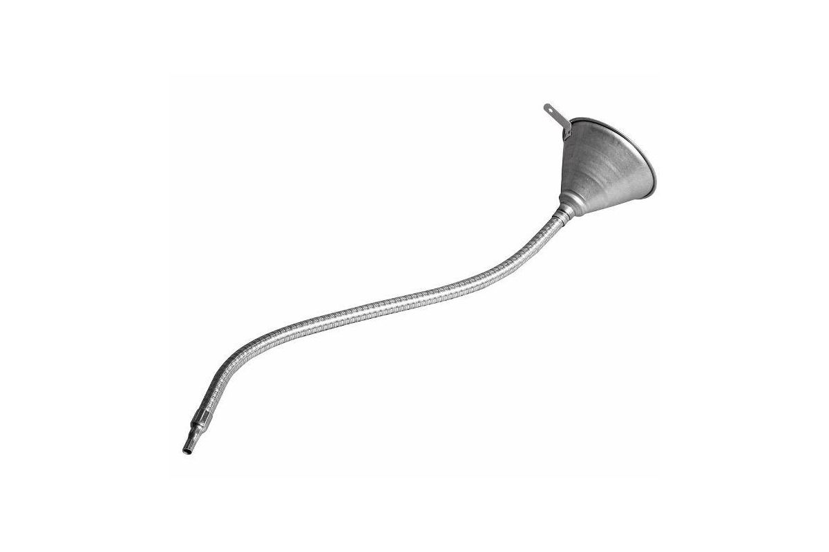 Металлическая воронка с гибким наконечником используется при заправке емкостей.