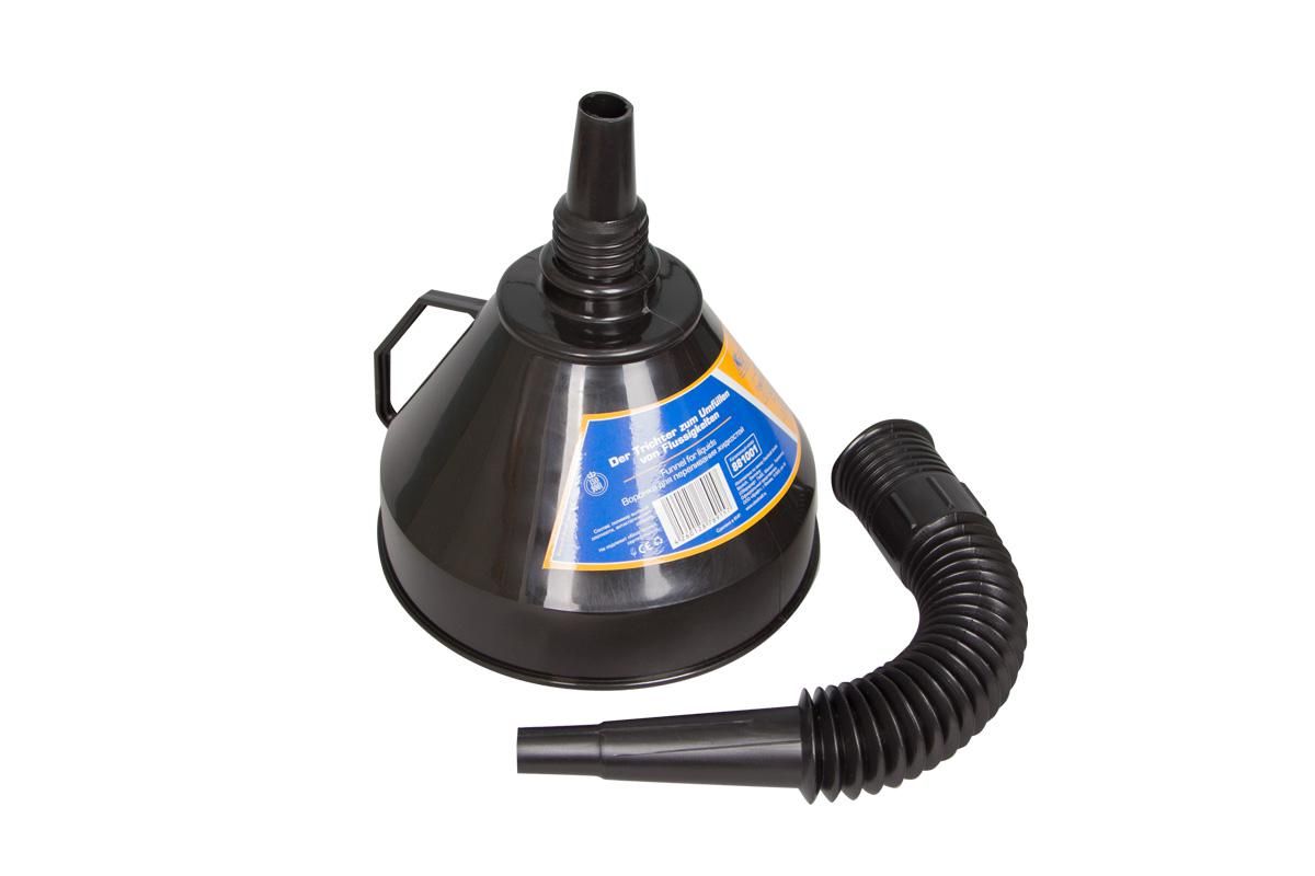 Воронка изготавливается из качественного материала, гарантирующего устойчивость ко всем видам технических жидкостей. Разборная конструкция обеспечивает удобство эксплуатации даже в местах с ограниченным доступом. Специальный фильтр с сетчатой структурой позволяет избежать попадания посторонних частиц.