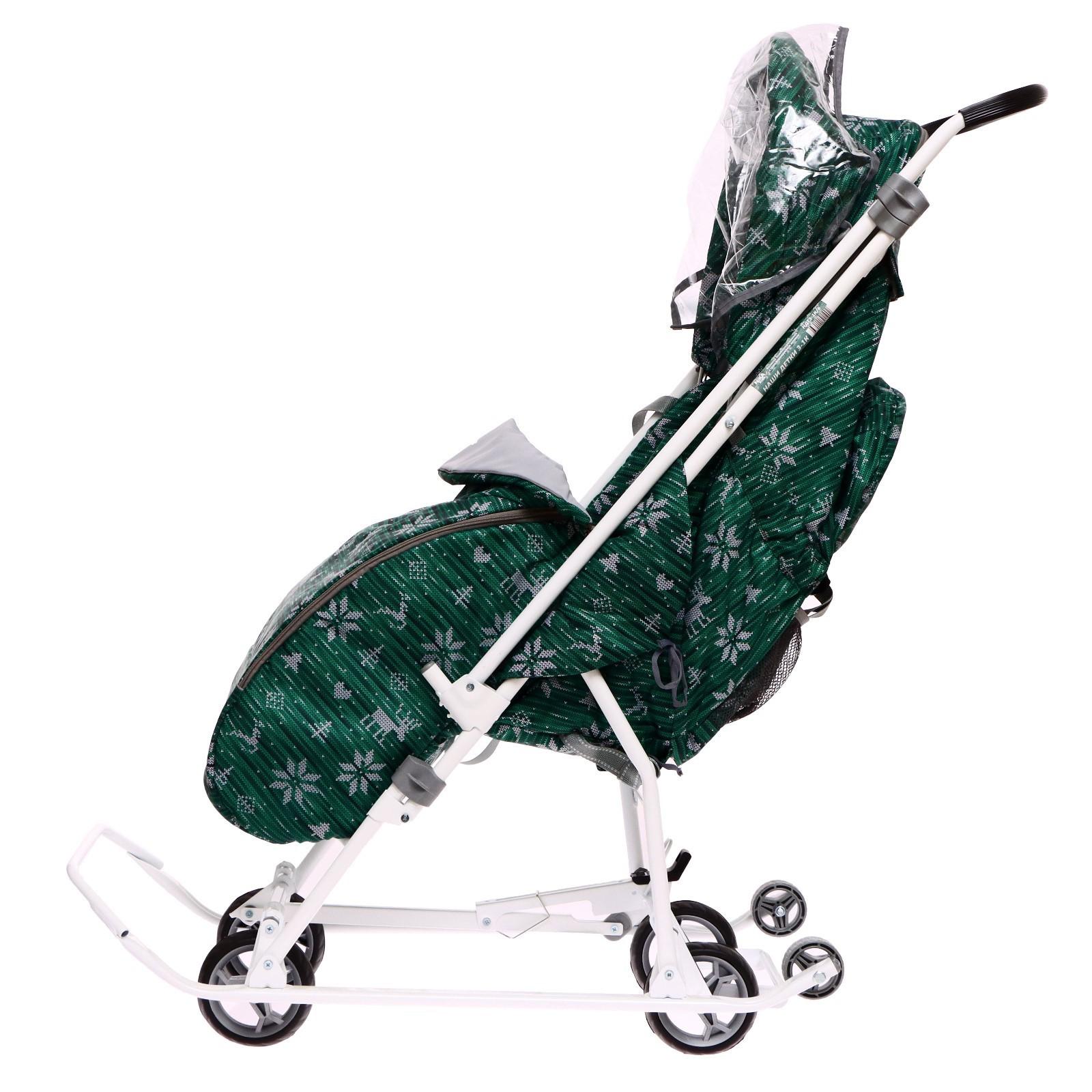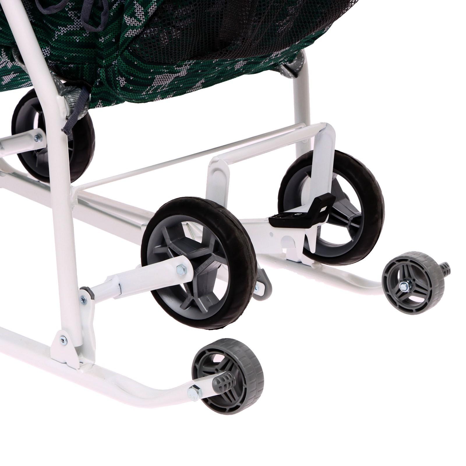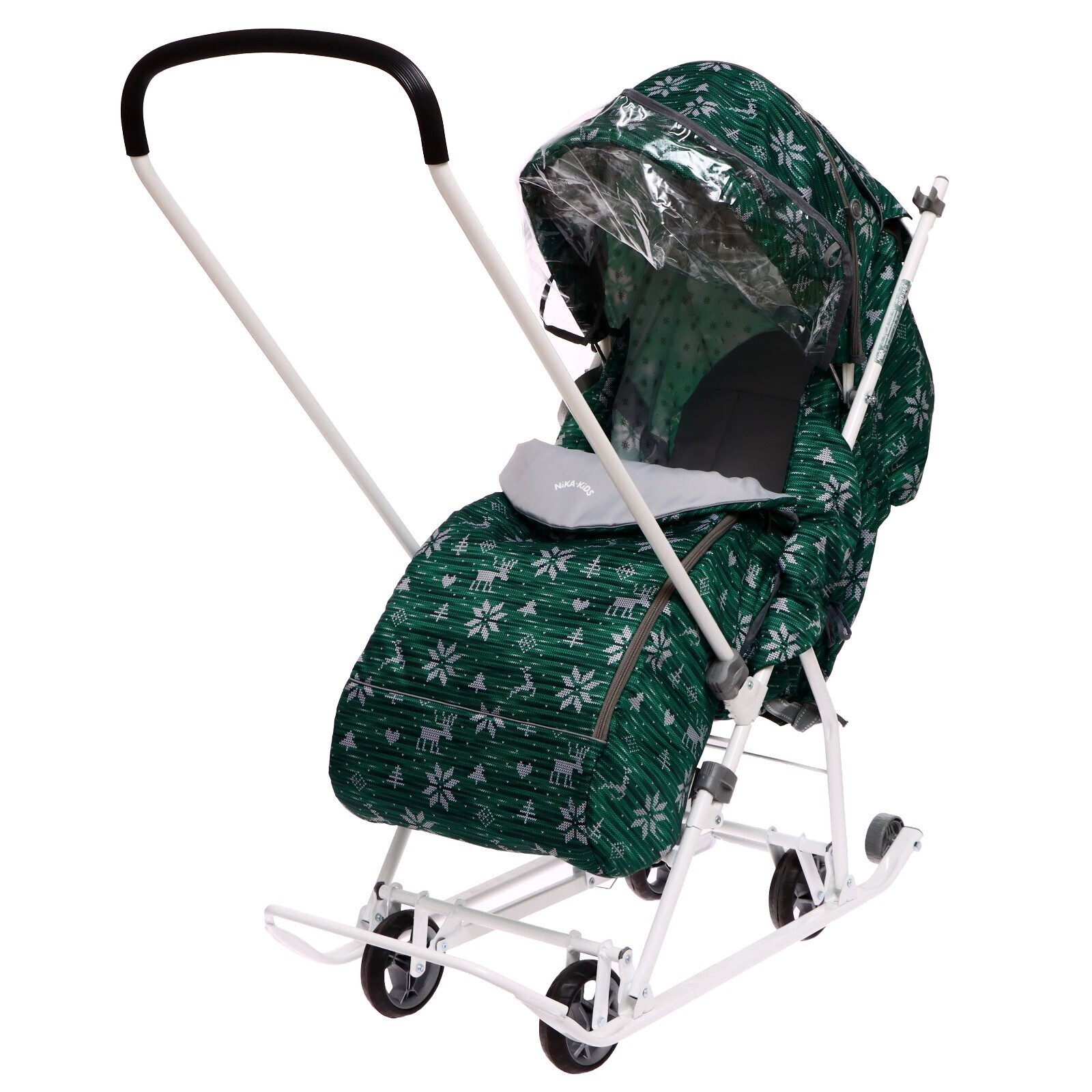Санки-коляска «Наши детки 3-1К», принт скандинавский, цвет зелёный