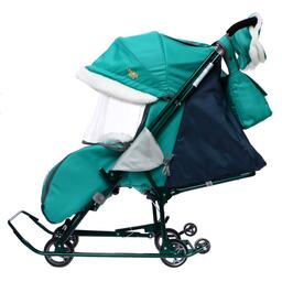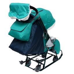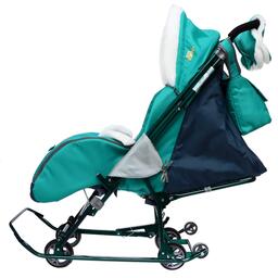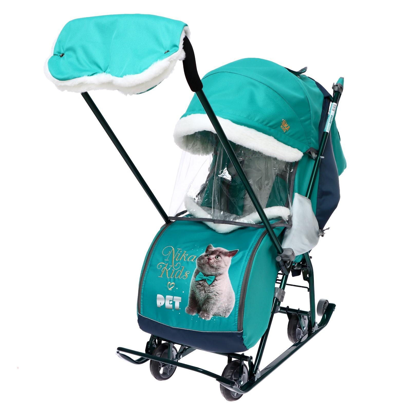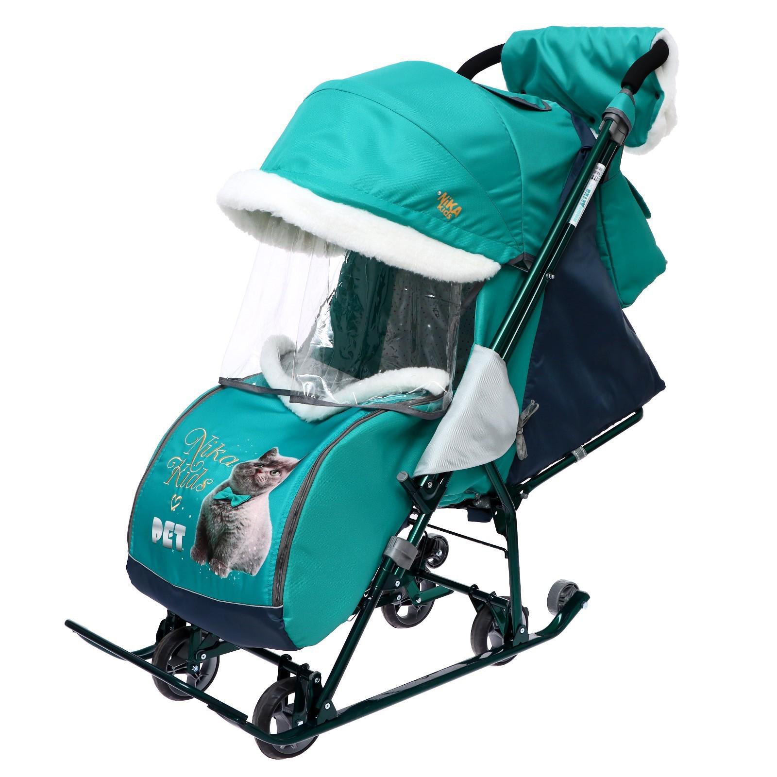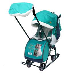 Санки-коляска «Наши детки» 4-1, кузов трансформер, рисунок с котенком, цвет изумрудный