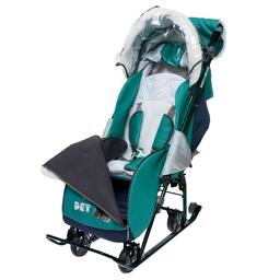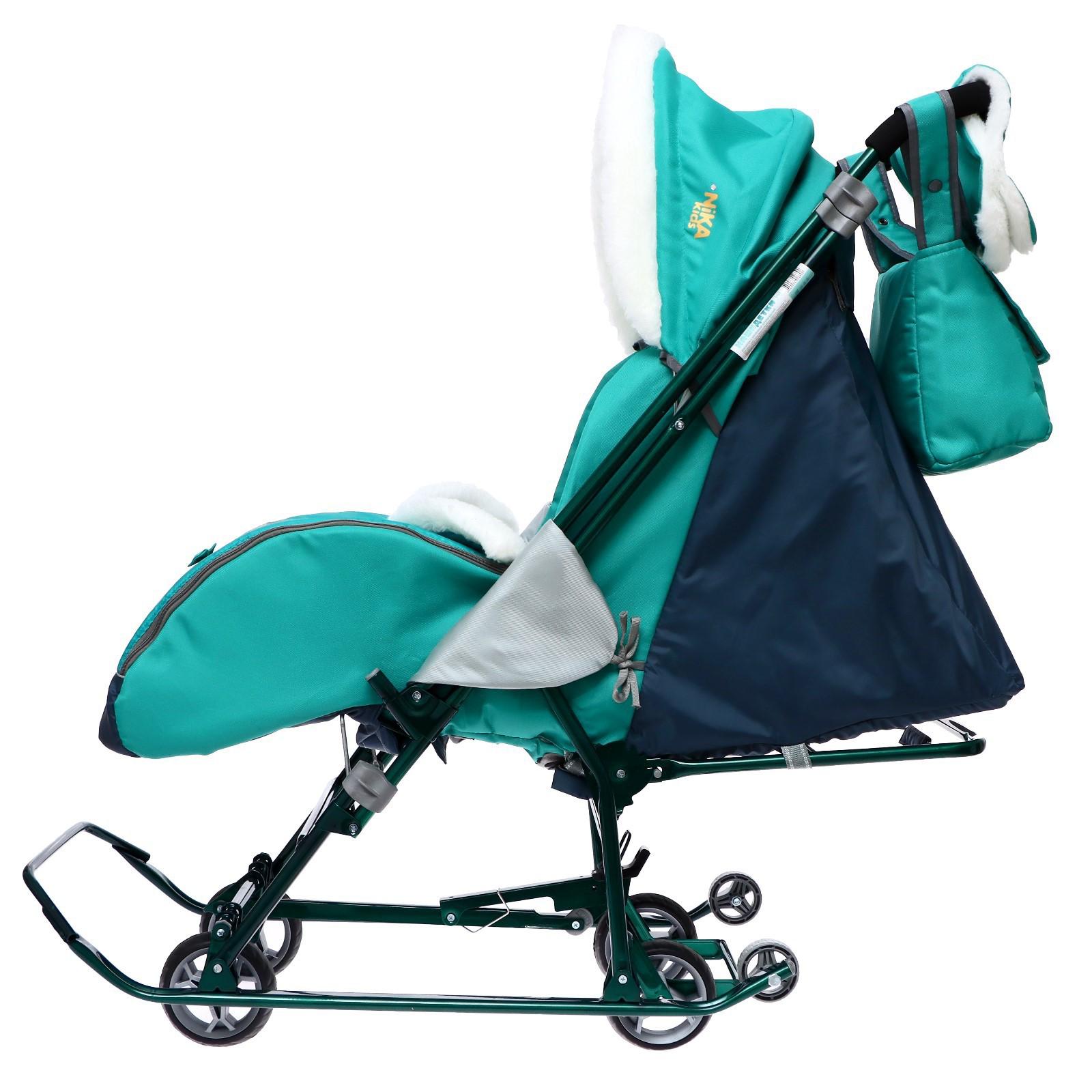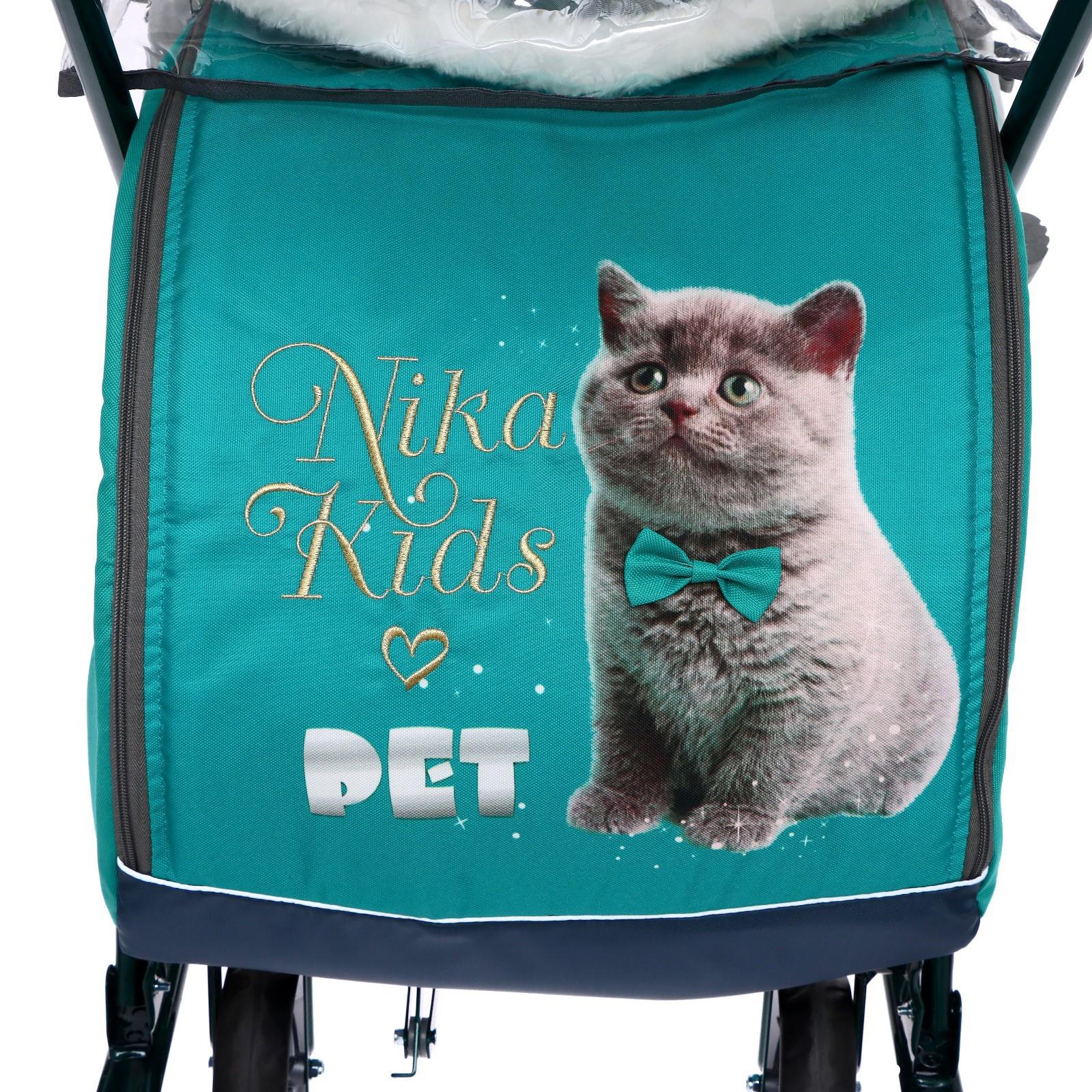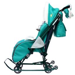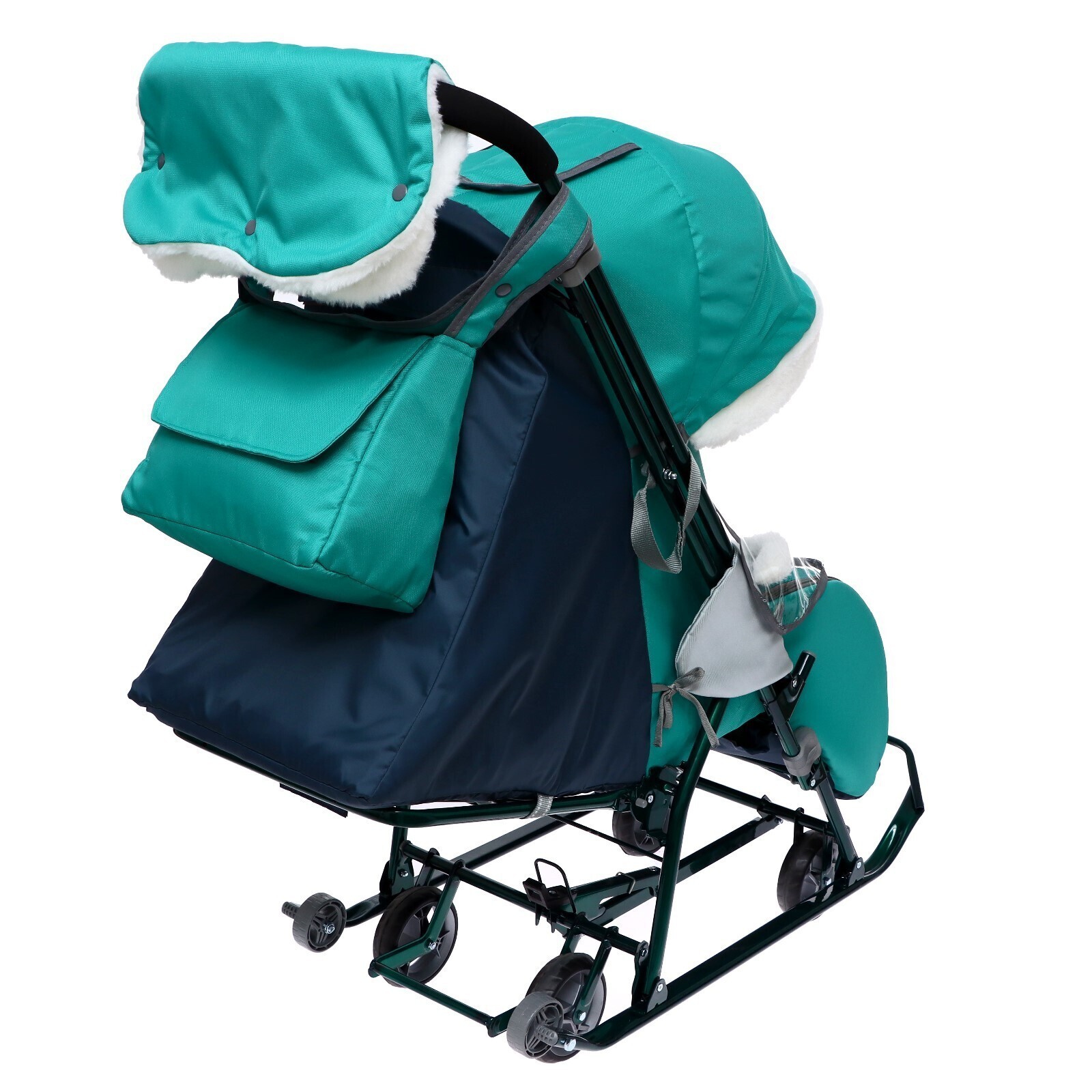 Санки-коляска «Наши детки» 4-1, кузов трансформер, рисунок с котенком, цвет изумрудный