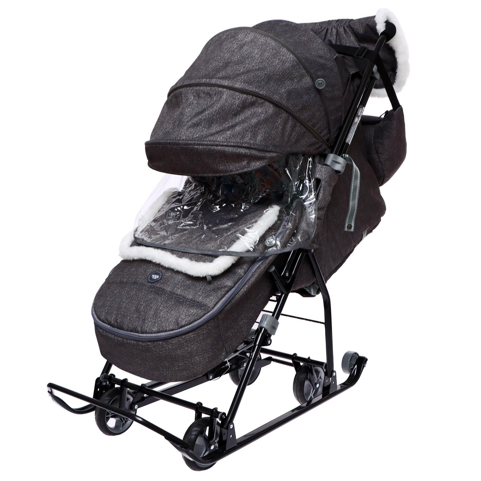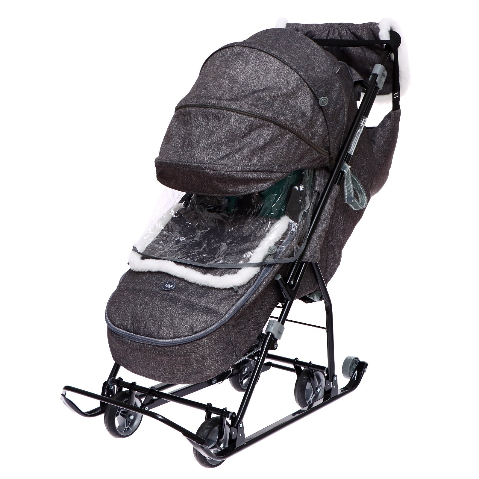 Санки-коляска «Наши детки» 6, принт с ламой, цвет серый