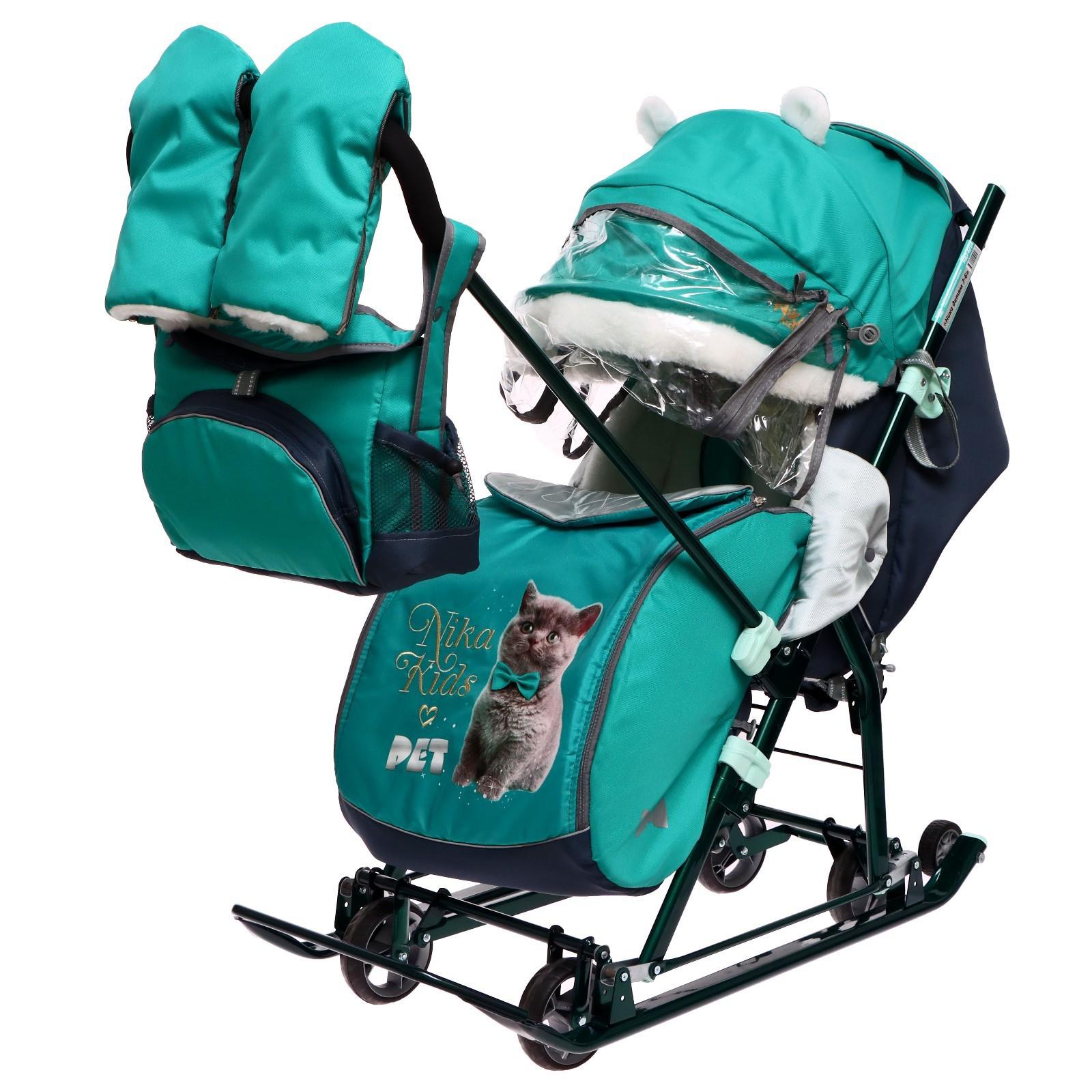 Санк-коляска «Ника детям 7-6», с котёнком, цвет изумрудный