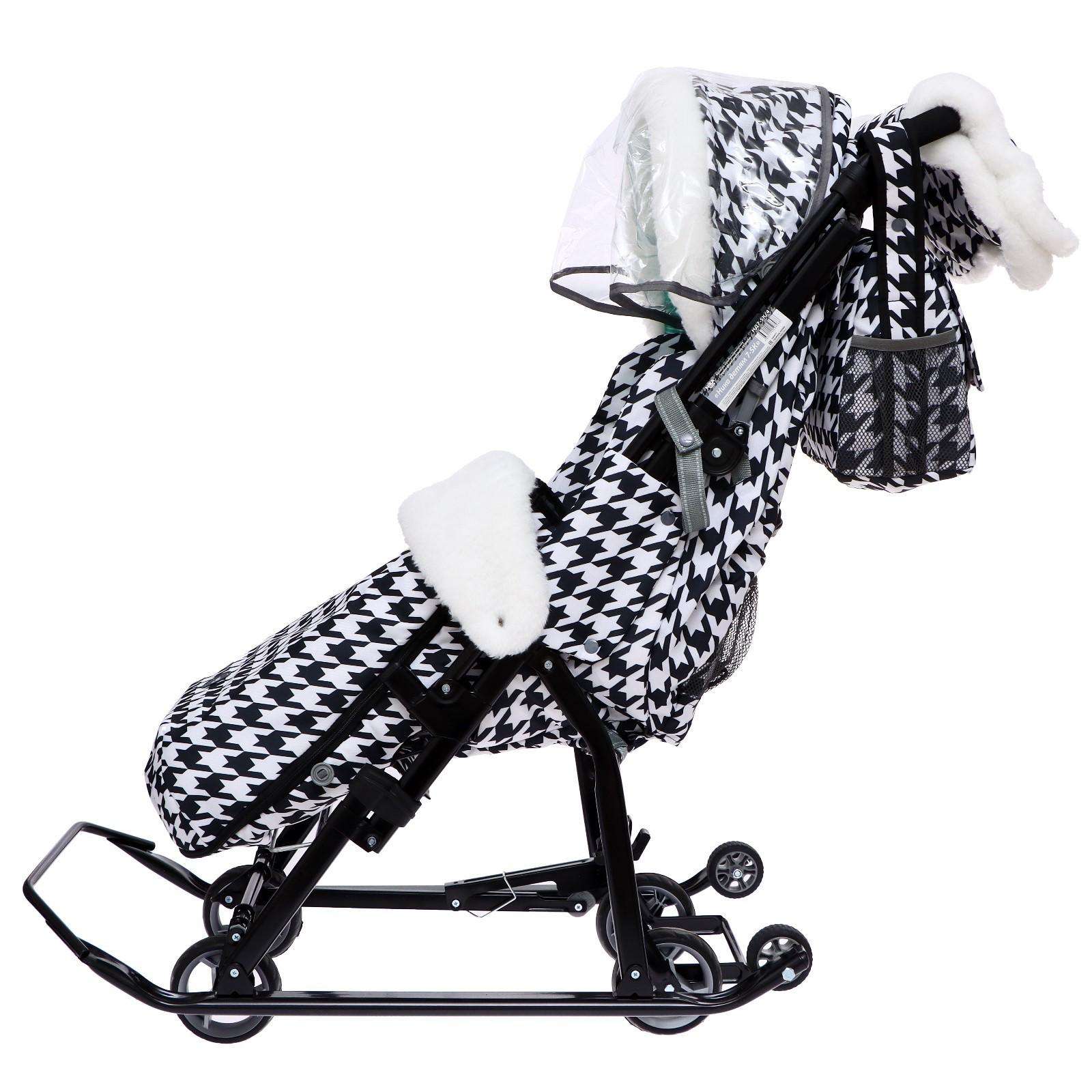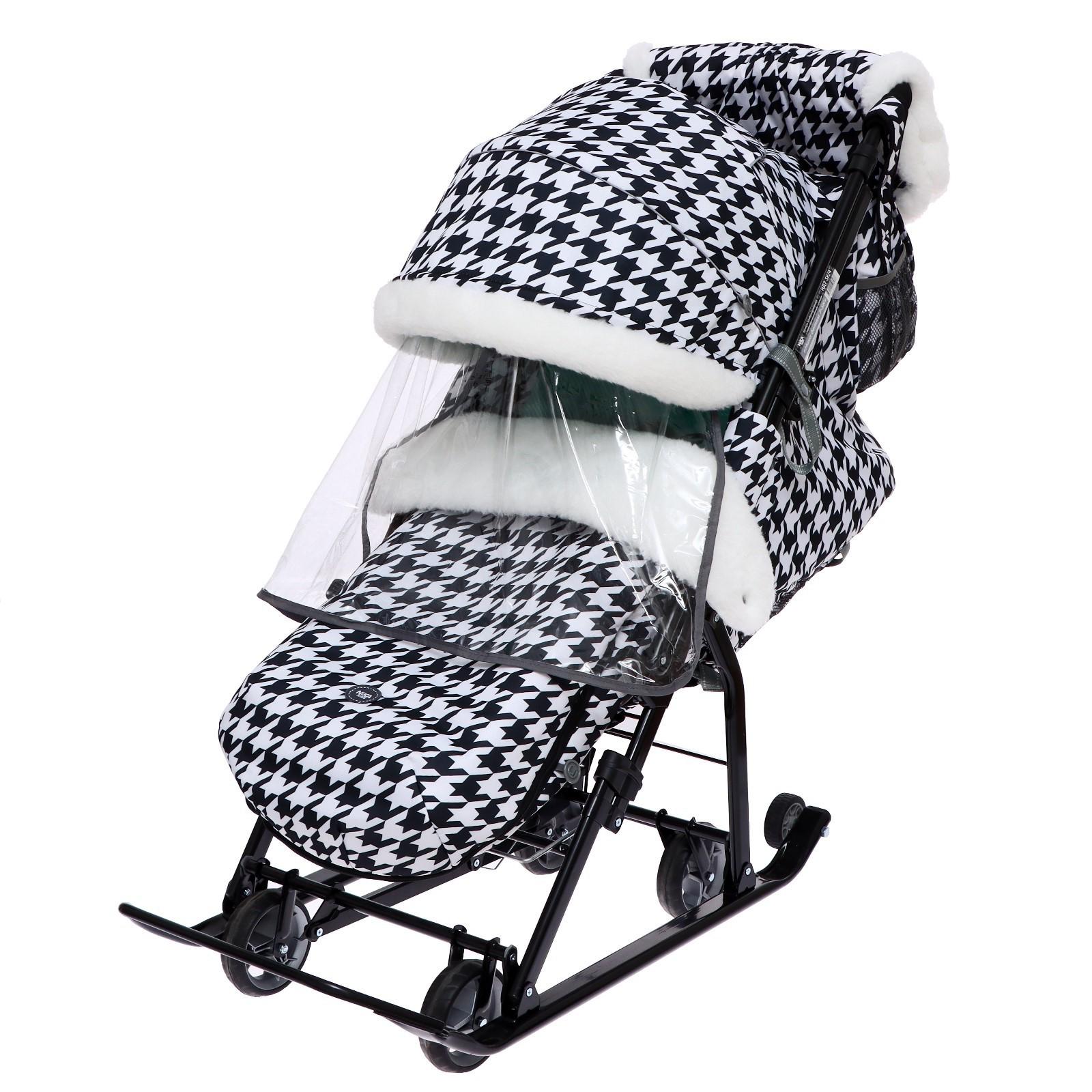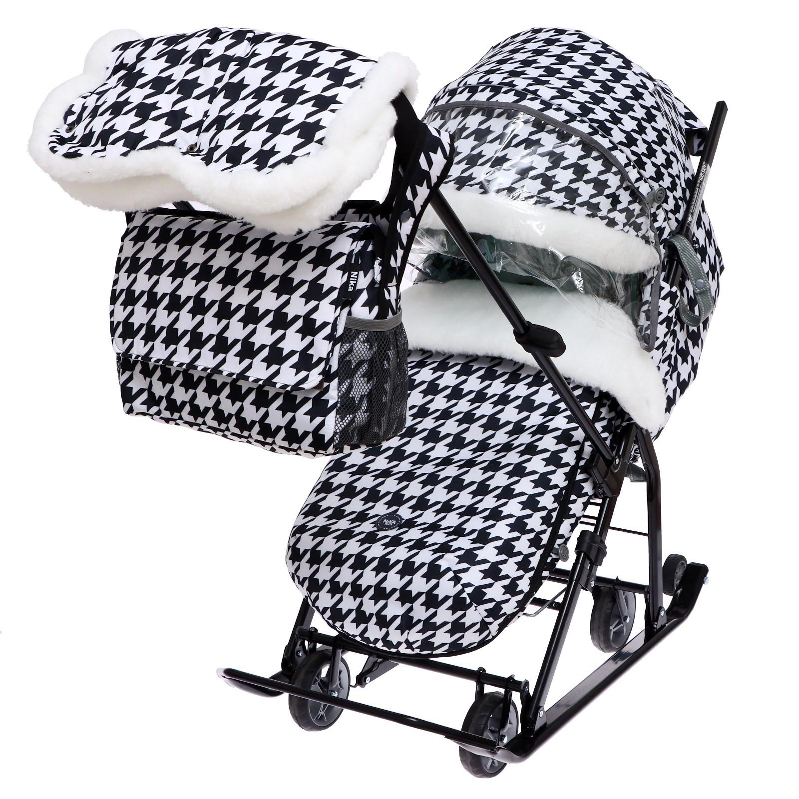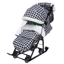 Санки-коляска «Ника Детям 7-5K», принт гусиная лапка