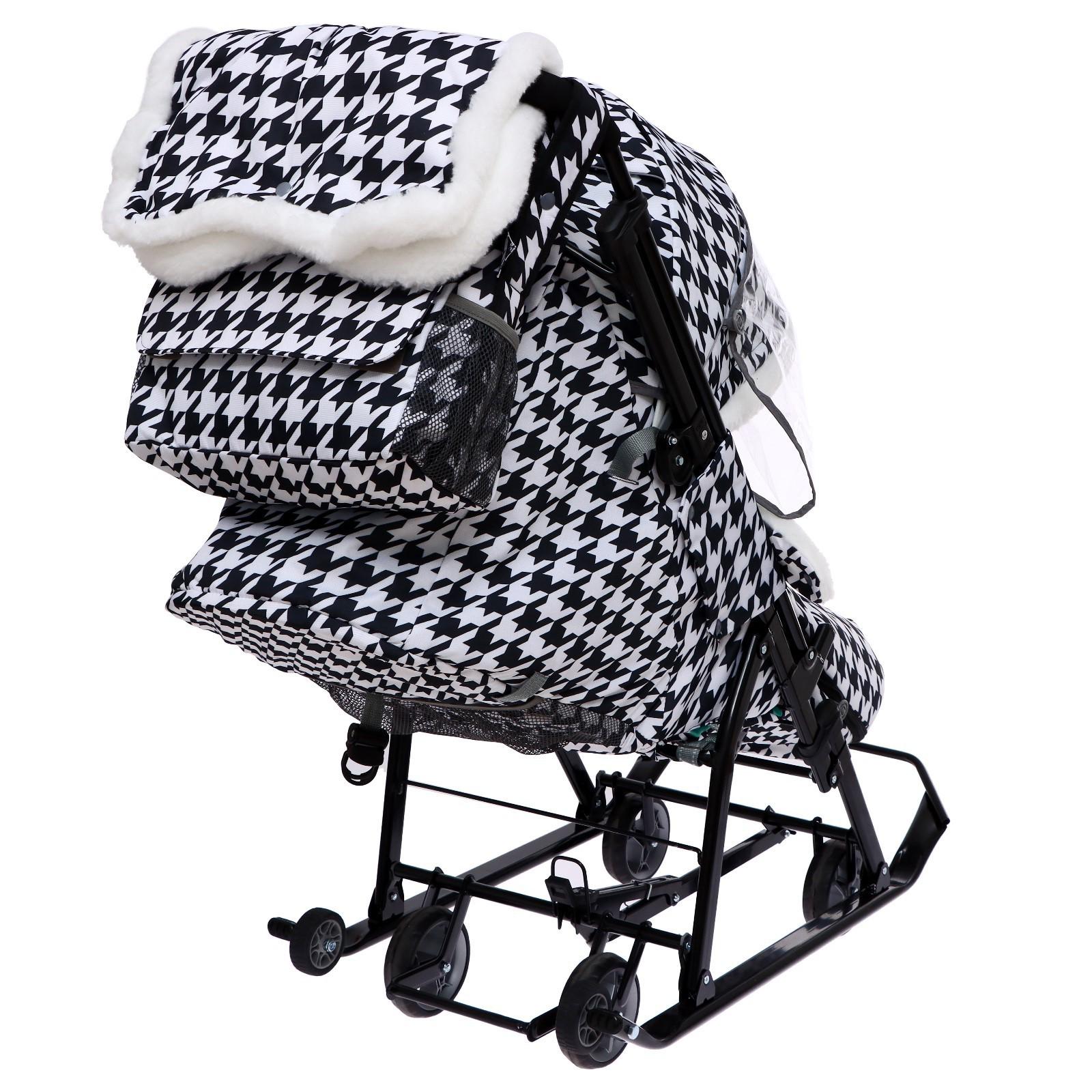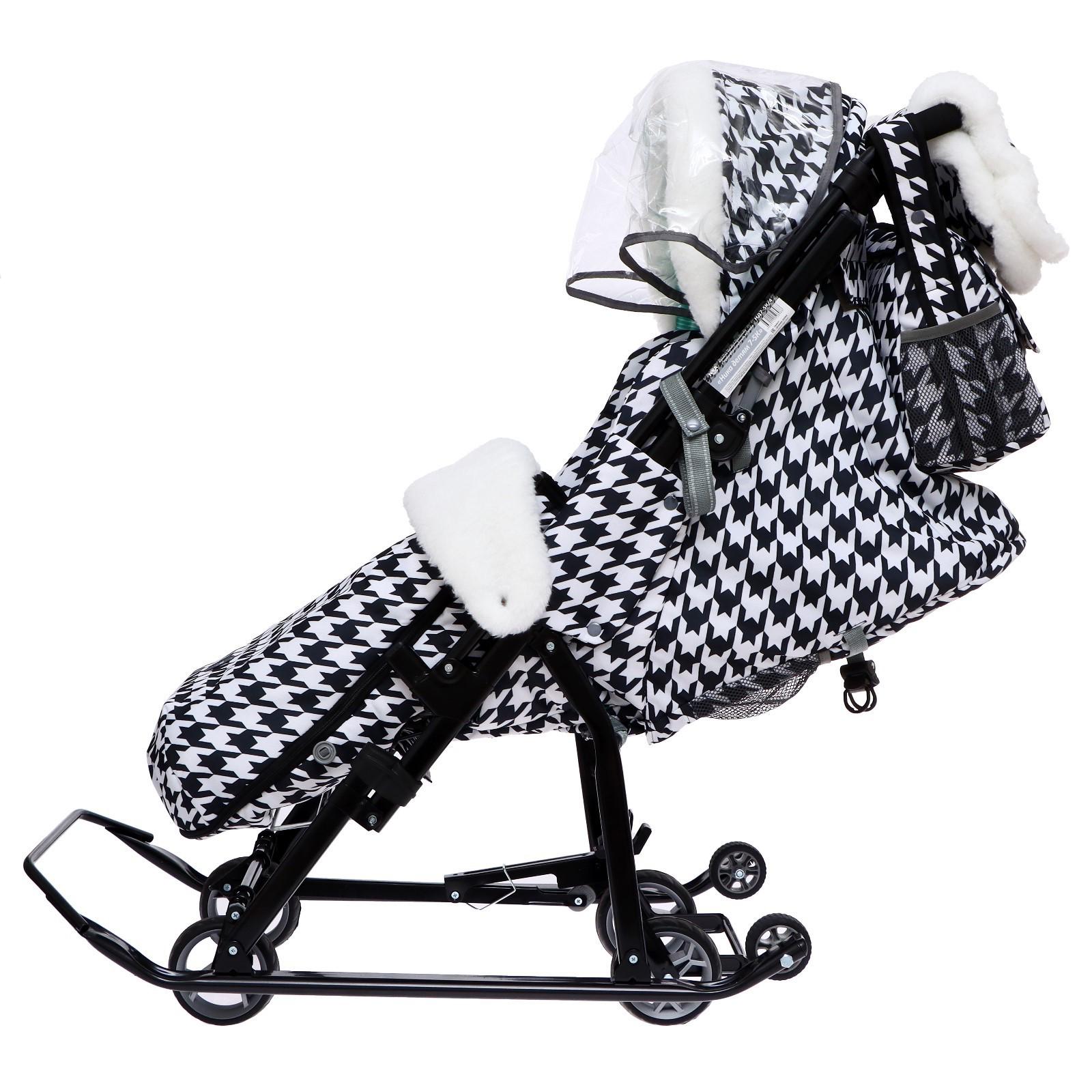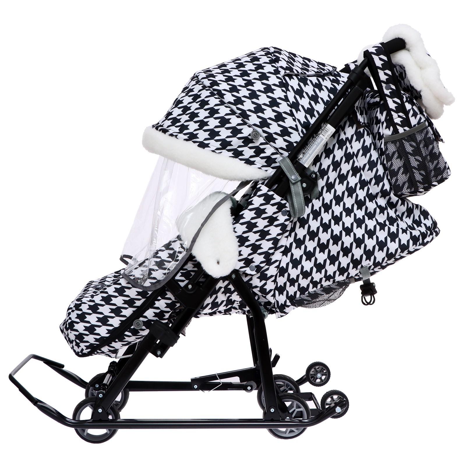 Санки-коляска «Ника Детям 7-5K», принт гусиная лапка