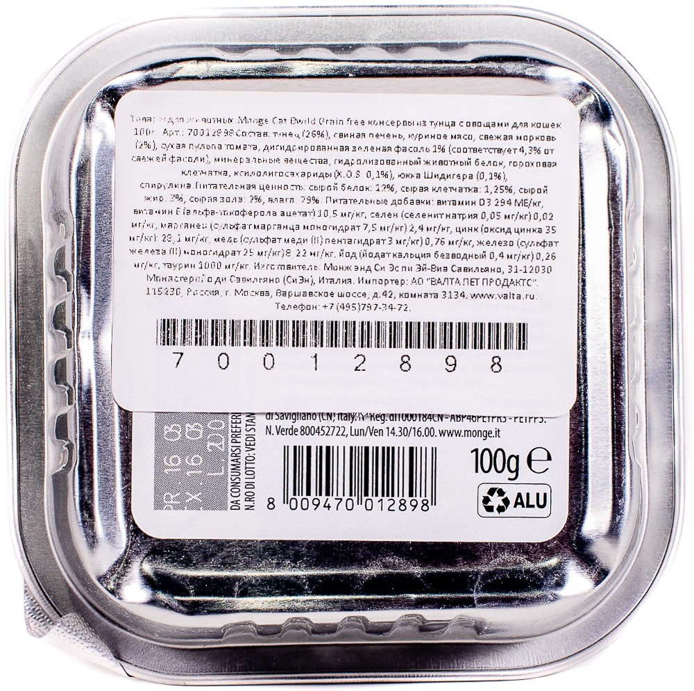 Monge Bwild Grain Free Pate Tonno 100 g