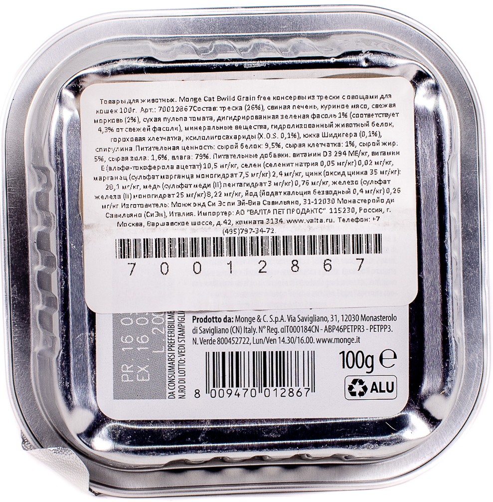Monge Bwild Grain Free Pate Merluzzo 100 g