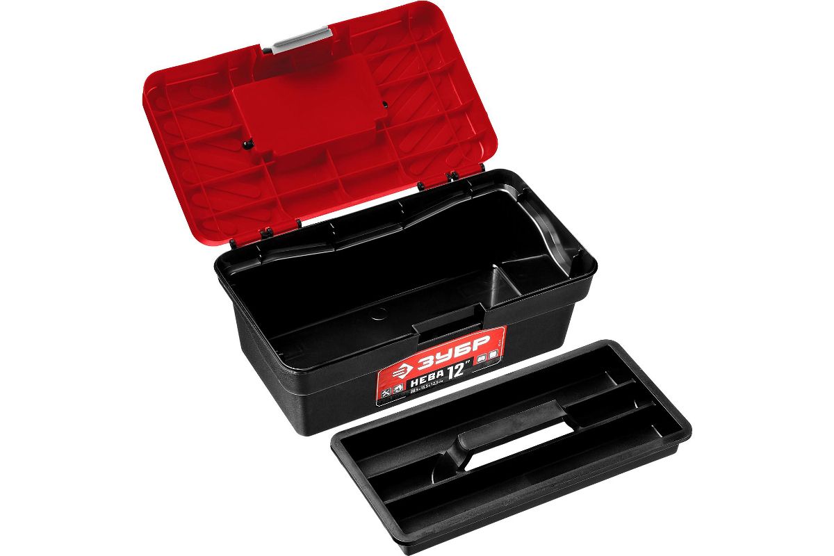 Ящик ЗУБР 38323-12 НЕВА-12 пластиковый Съемная полка для размещения мелких предметов или самых востребованных инструментов.