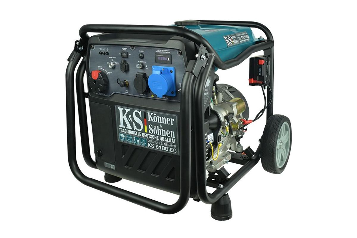 Портативный генератор KS 8100iE G немецкой ТМ «Konner & Sohnen» — это удобный источник электроэнергии. Встроенный электронный блок с микропроцессорным управлением контролирует работу генератора и обеспечивает фиксированную частоту 50 Гц и напряжение 230В.