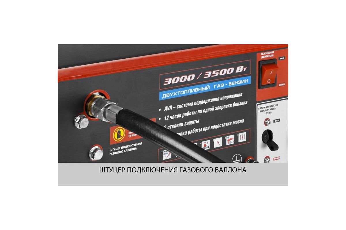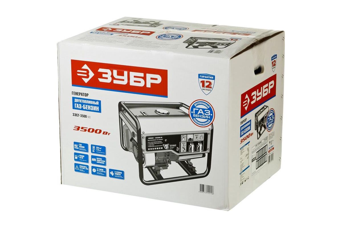 Генератор ЗУБР ЗЭСГ-3500-М2 комби газ+бензин 4-х такт 220/12В 3500/3000Вт ручн.пуск