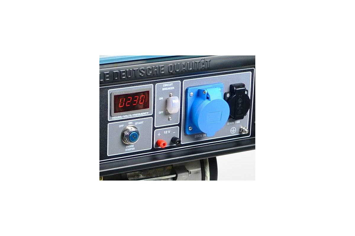 - Удобная эргономичная панель управления генератора с электрозапуском позволяет с легкостью запустить генератор, управлять его работой, не требует дополнительных навыков. Современный интеллектуальный LED-дисплей всегда подскажет количество отработанных часов, частоту и вольтаж, что кажется. Информация на дисплее позволяет контролировать напряжение, частоту, количество отработанных генератором часов и своевременно проводить техническое обслуживание генератора, тем самым продлевая срок его эксплуатации;