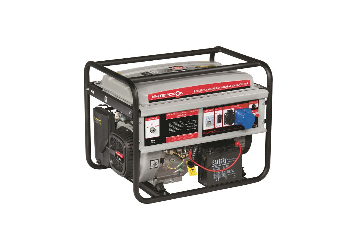 Бензоэлектростанция ИНТЕРСКОЛ ЭБГ-5500 (292.1.0.00) 5.5кВт 220В бак 25л пуск ручн/электро синхронна