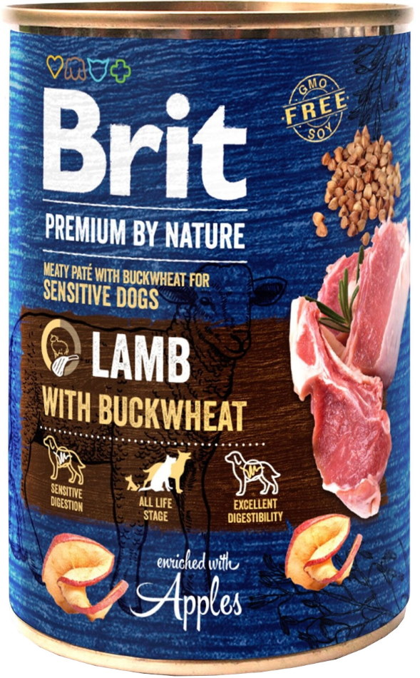 - Ингредиенты ягненок 36%, бульон 35.5%, курица 22 %, гречка, яблоки, минералы