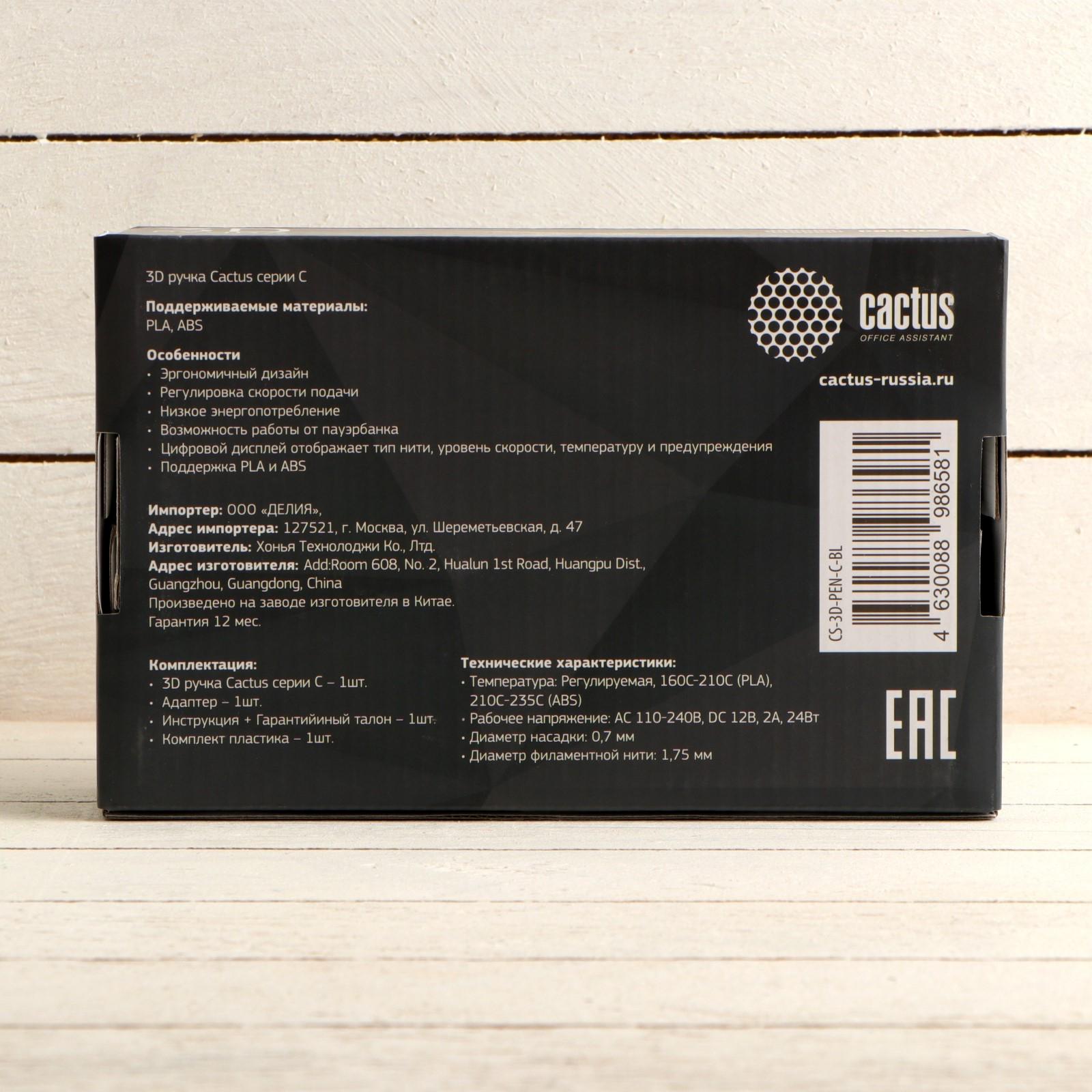 3D ручка Cactus (CS-3D-PEN-C-BL), ABS и PLA, пластик в комплекте, голубая