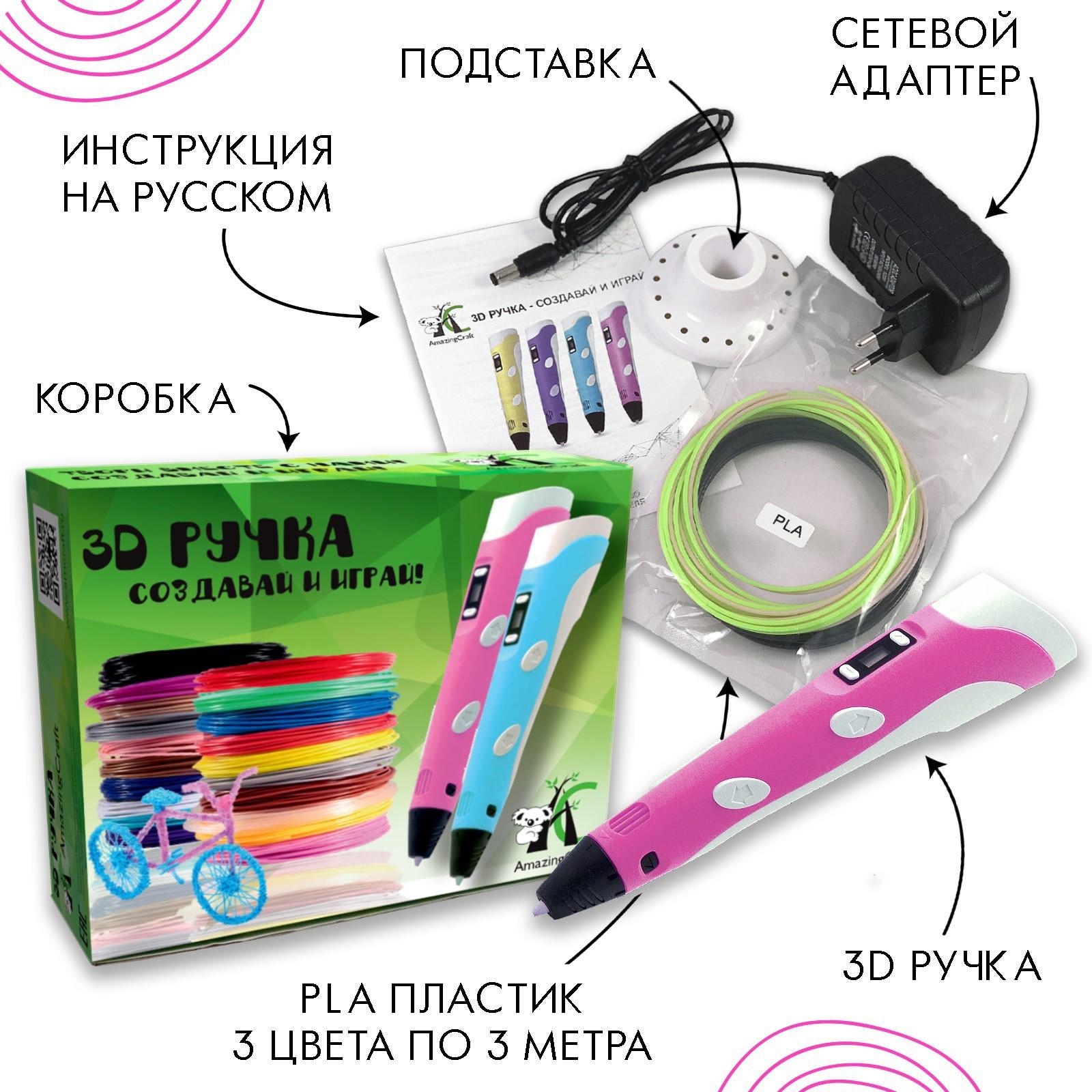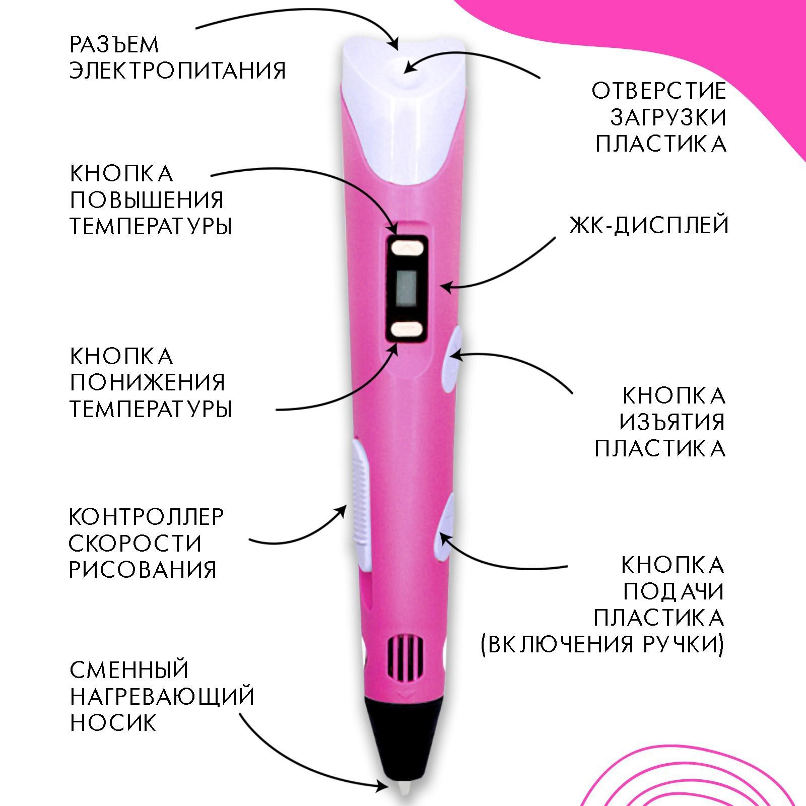 3D ручка AmazingCraft, для ABS и PLA пластика, ЖК дисплей, цвет розовый