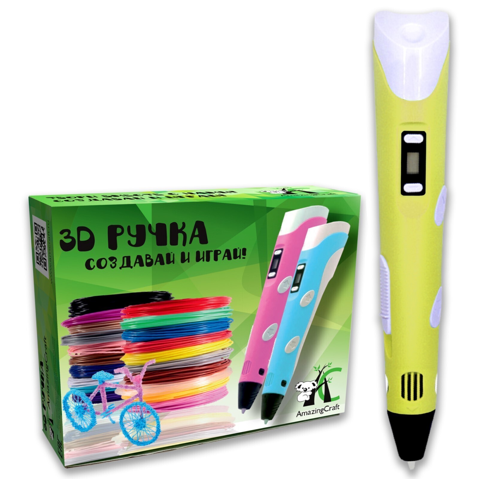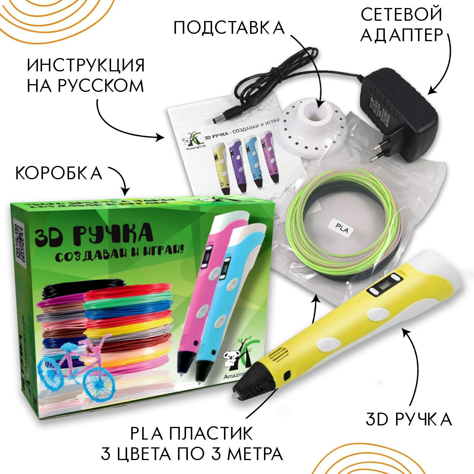 3D ручка AmazingCraft, для ABS и PLA пластика, ЖК дисплей, цвет жёлтый