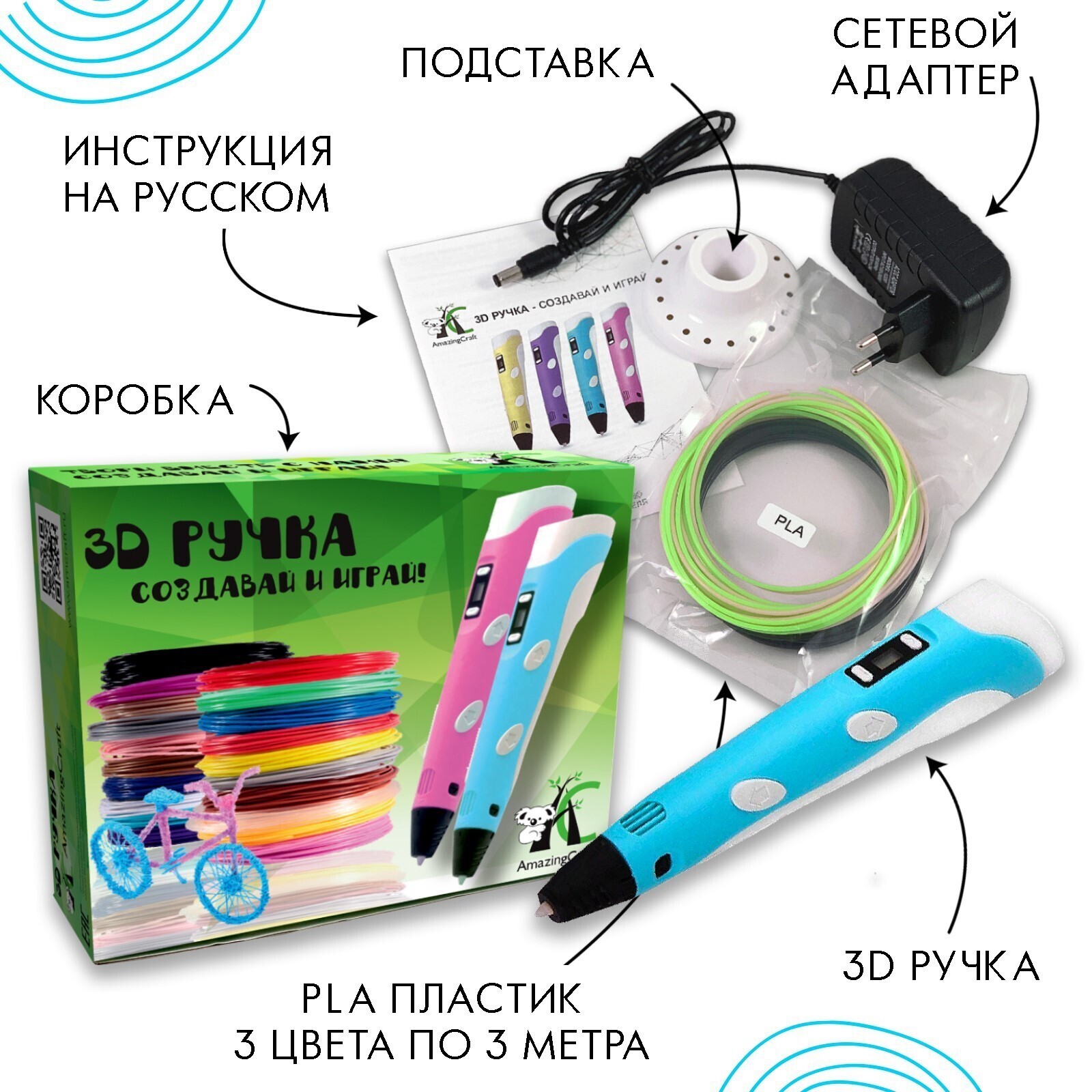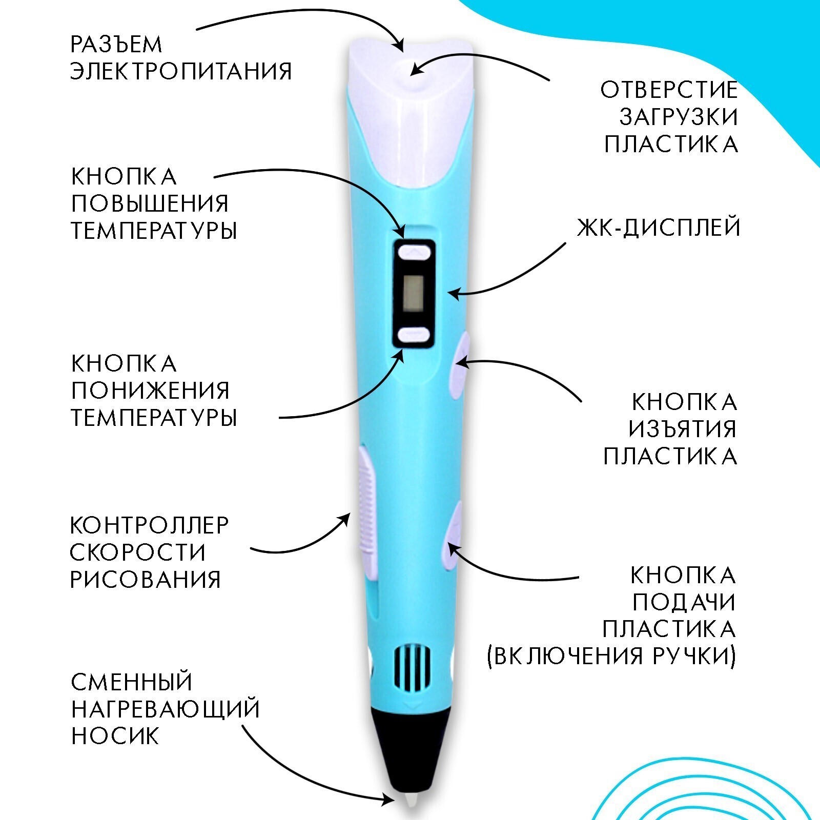 3D ручка AmazingCraft, для ABS и PLA пластика, ЖК дисплей, цвет голубой