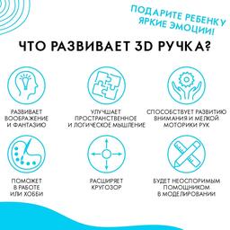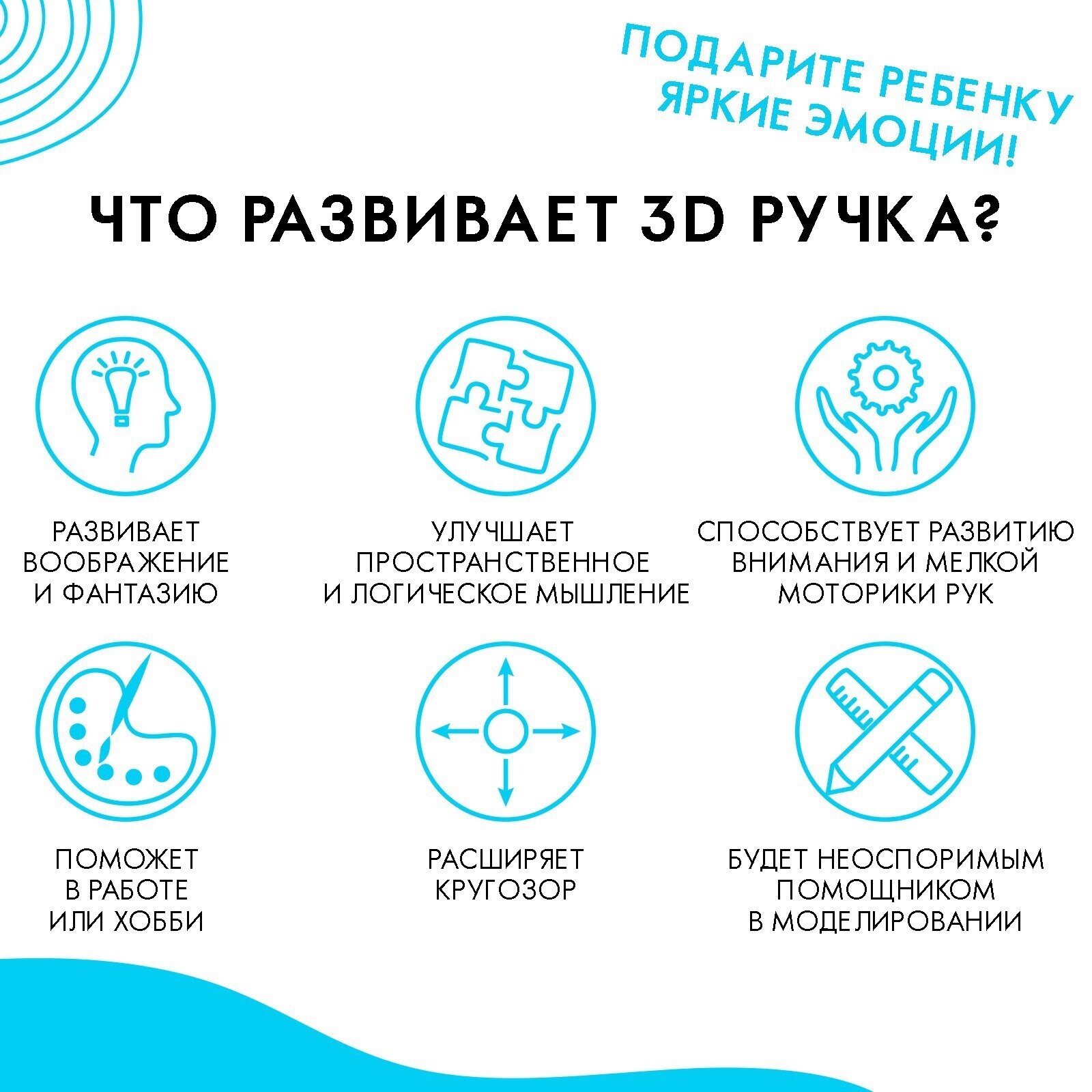 3D ручка с набором пластика и трафаретами — замечательный подарок ребёнку на любой праздник! Прекрасно развивает творческое мышление и увлекает полезной и безопасной игрой.