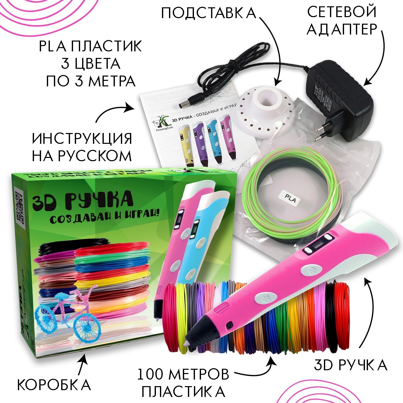 3D ручка AmazingCraft, набор ABS пластика 10 цветов по 10 м, цвет розовый