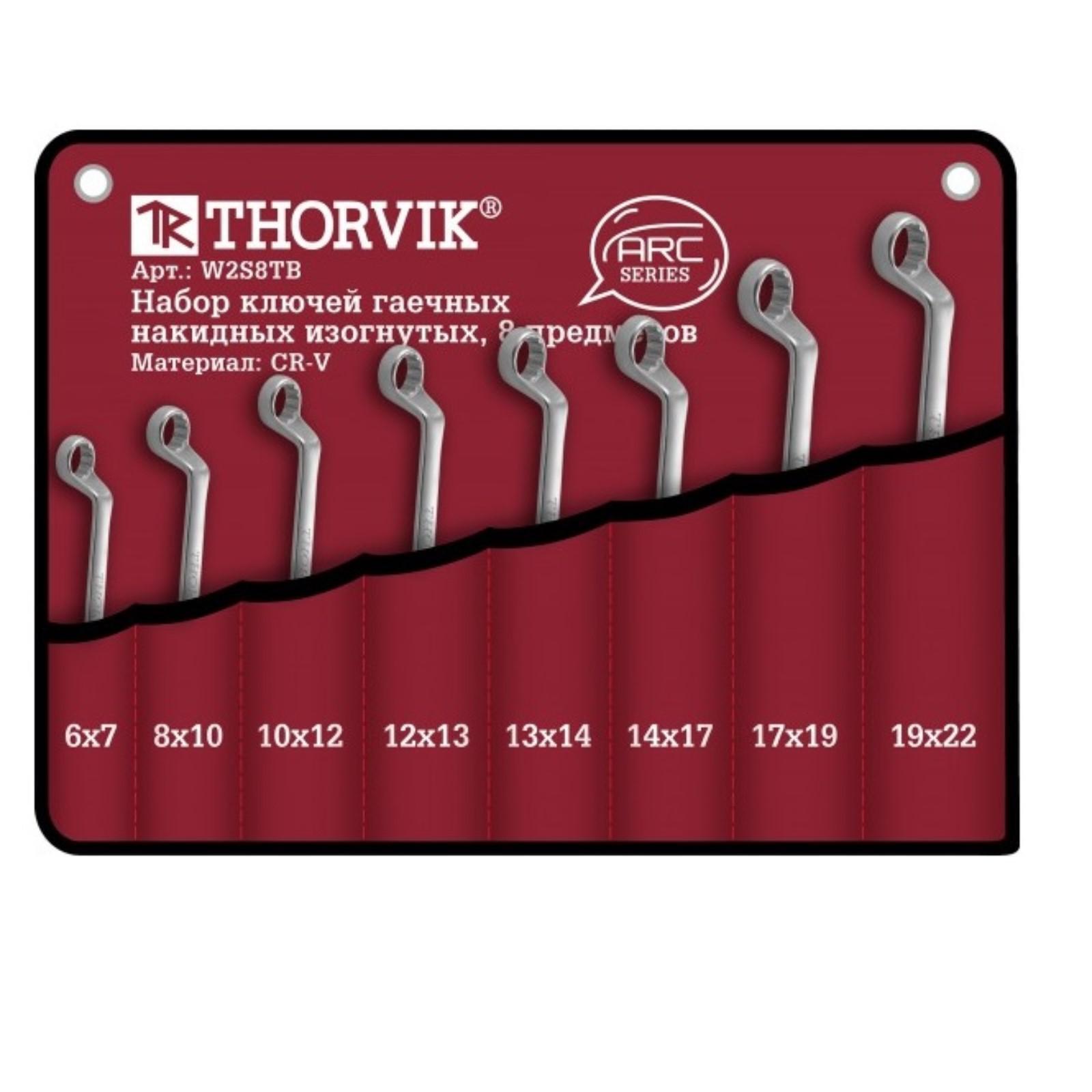 Набор ключей Thorvik 52623, гаечных, накидных, изогнутых, в сумке, 6-22 мм, 8 предметов