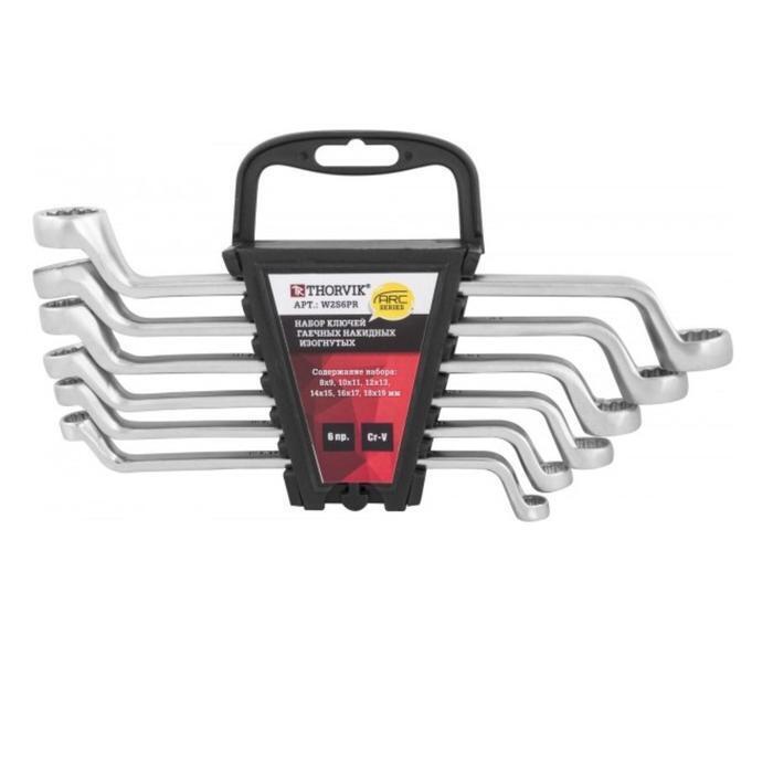 Набор ключей Thorvik 52621, гаечных, накидных, изогнутых, на держателе, 8-19 мм, 6 предметов