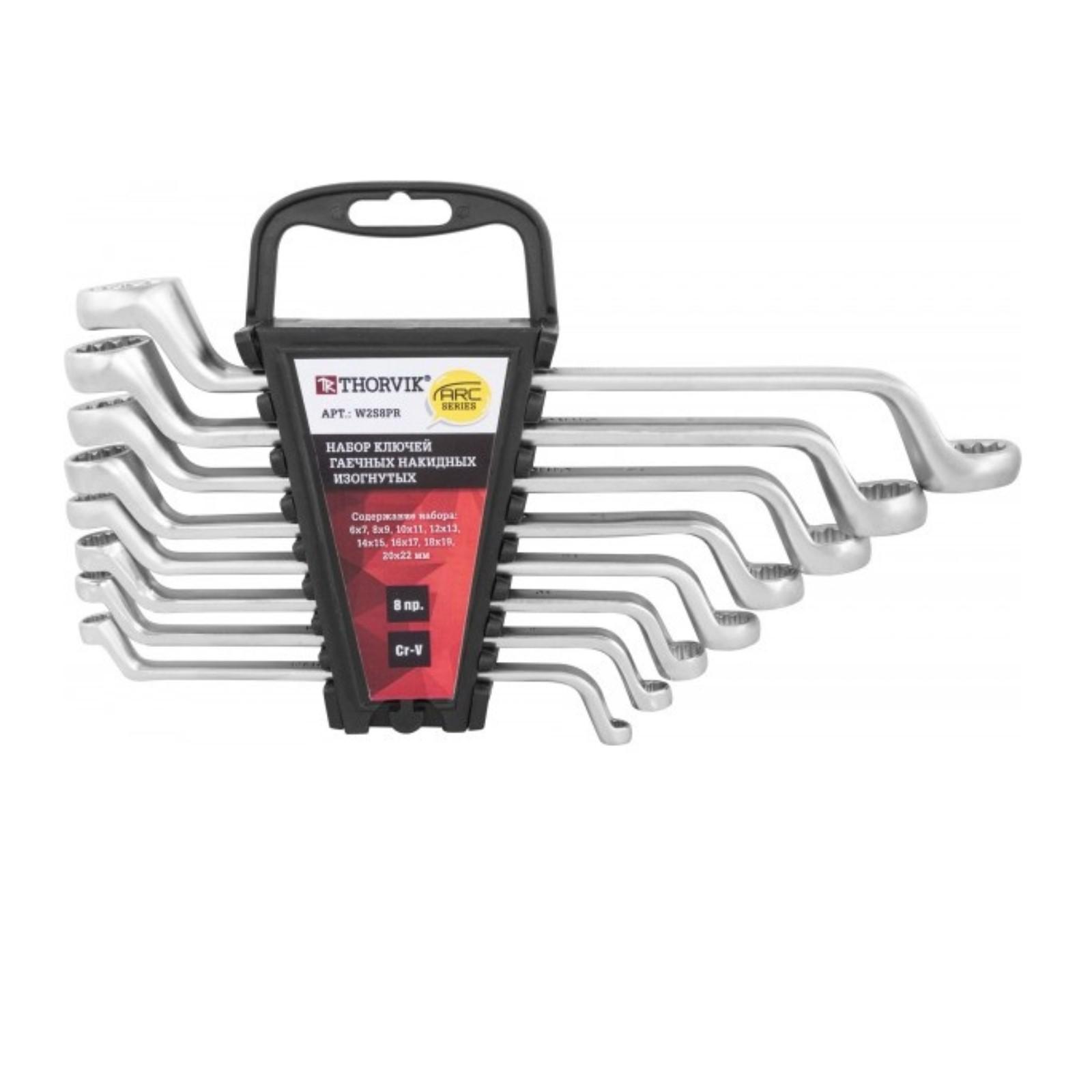 Набор ключей Thorvik 52622, гаечных, накидных, изогнутых, на держателе, 6-22 мм, 8 предметов