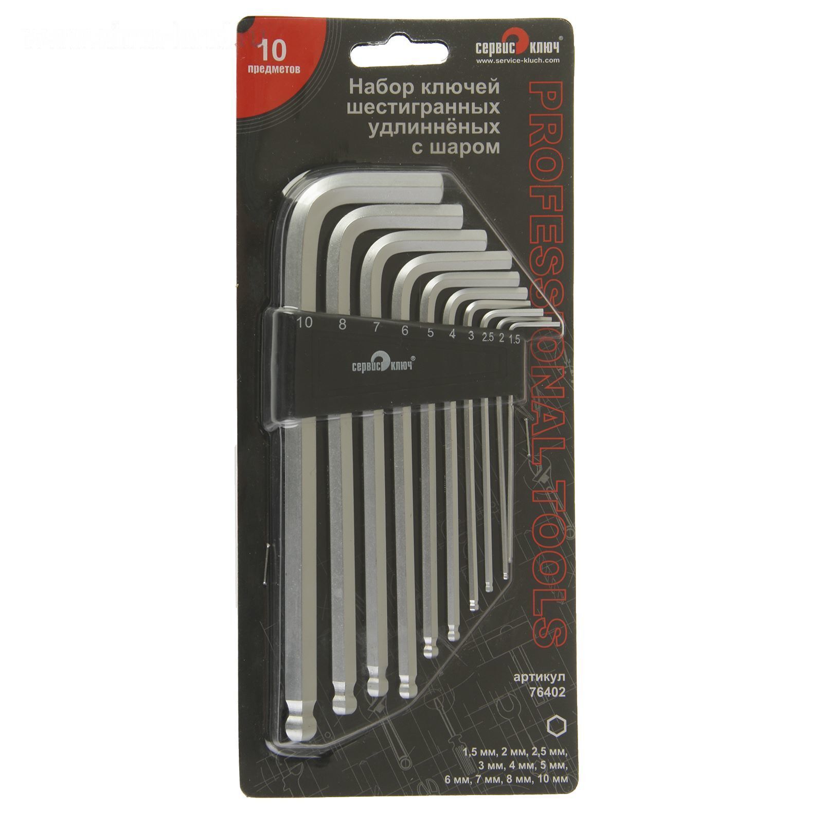 Набор шестигранников "СЕРВИС КЛЮЧ", Proffi, 10 пр., удлиненные, с шаром