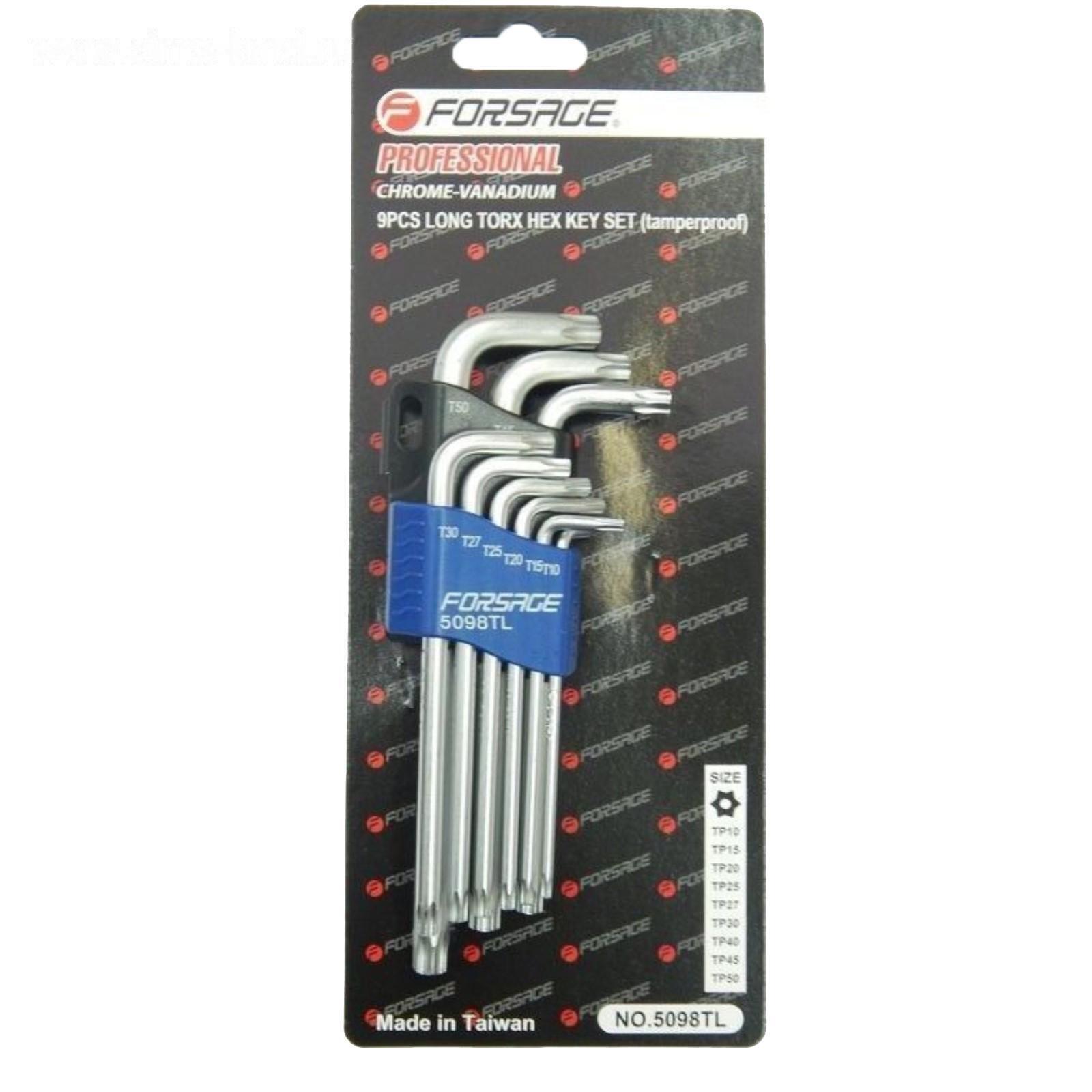 Набор ключей Forsage F-5098L, Г-образные, TORX, длинные, 9 предметов, на держателе