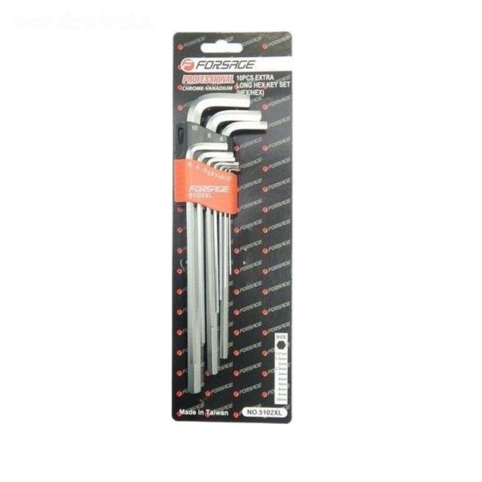 Набор ключей Forsage F-5102XL, Г-образные, 6-гранные, длинные, 10 предметов