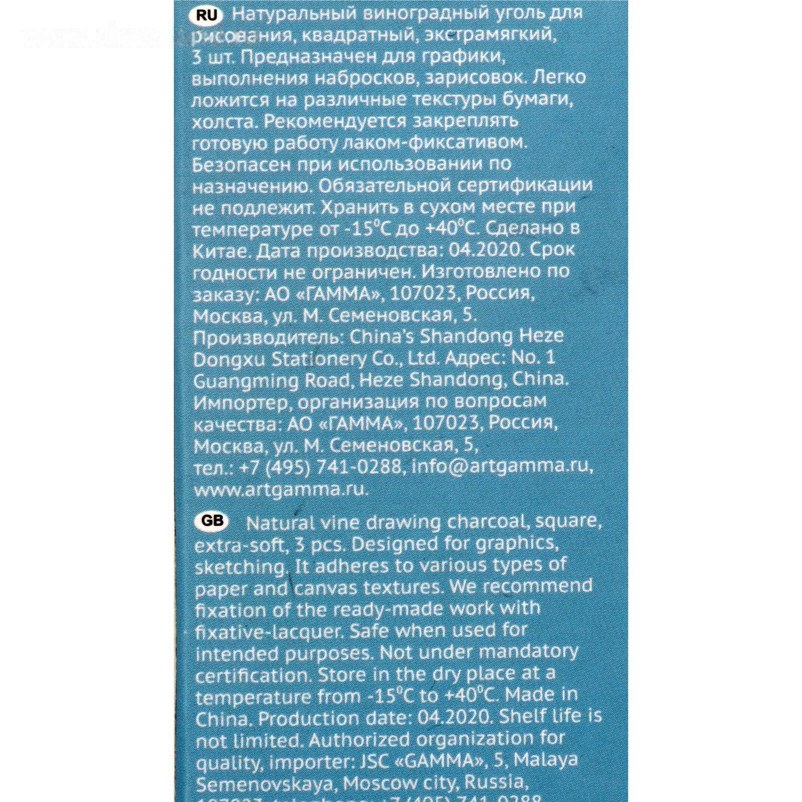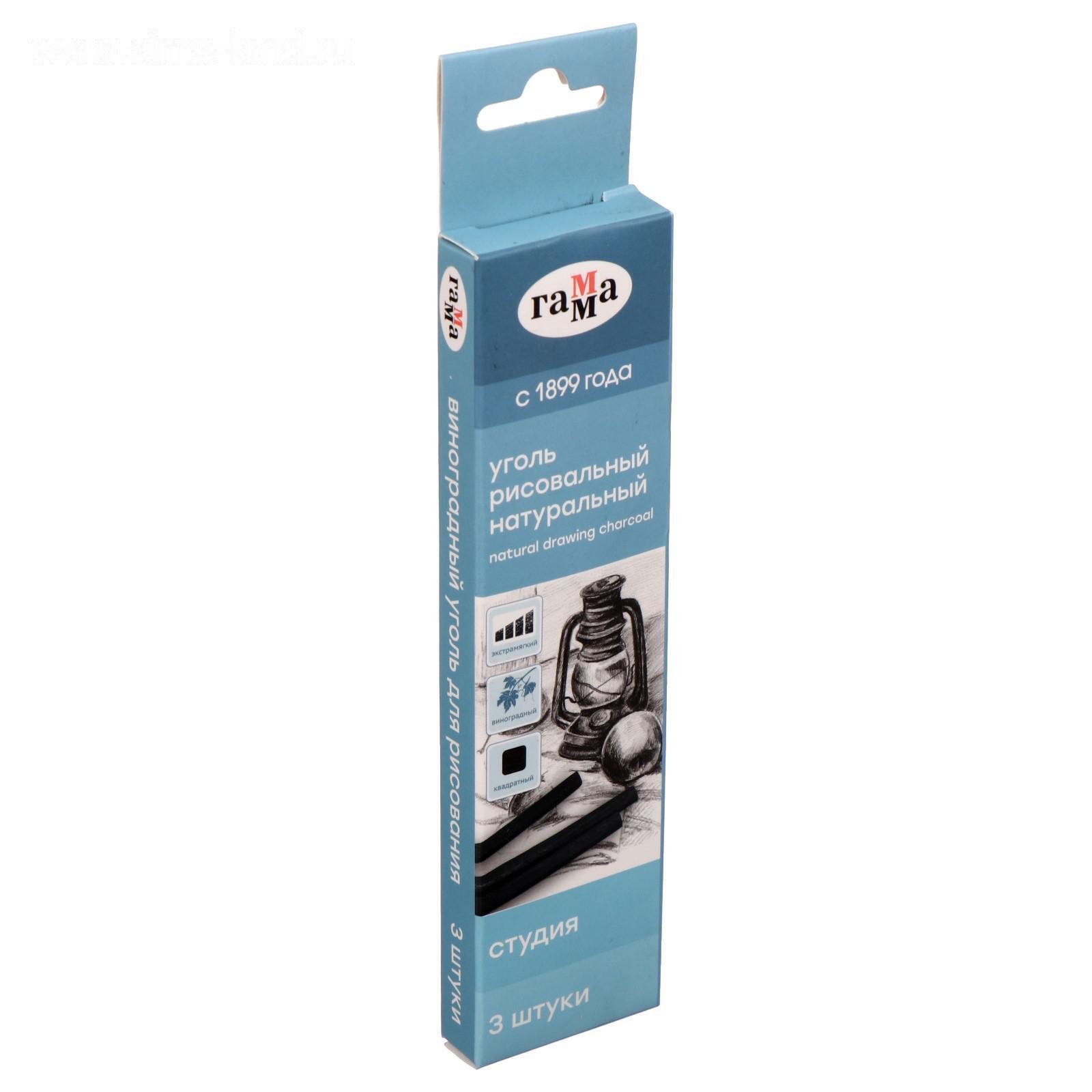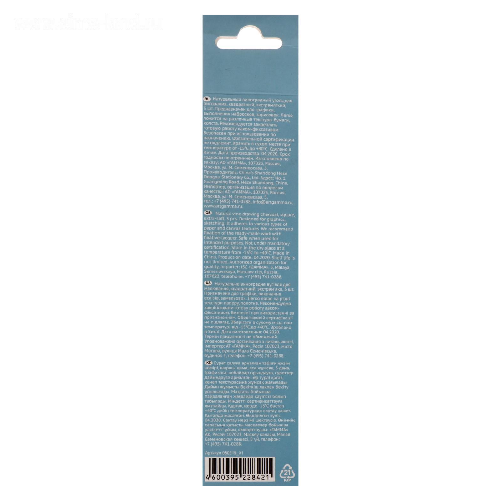Уголь натуральный 5 мм, набор 3 штуки, квадрат «Гамма» «Студия» 120 мм, экстрамягкий, виноградный