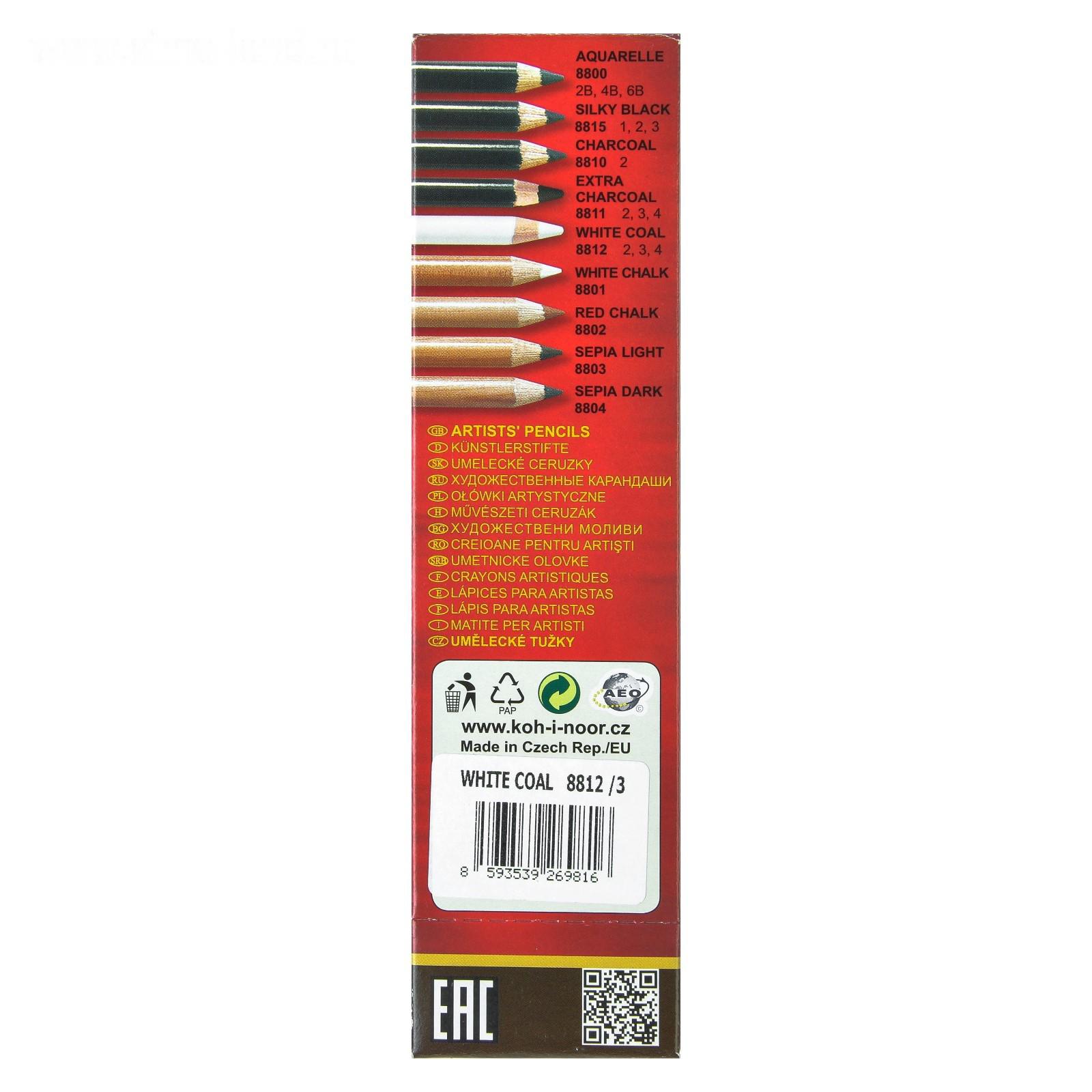 Уголь белый в карандаше 4.5 мм, Koh-I-Noor Medium GIOCONDA 8812/3, L=175 мм