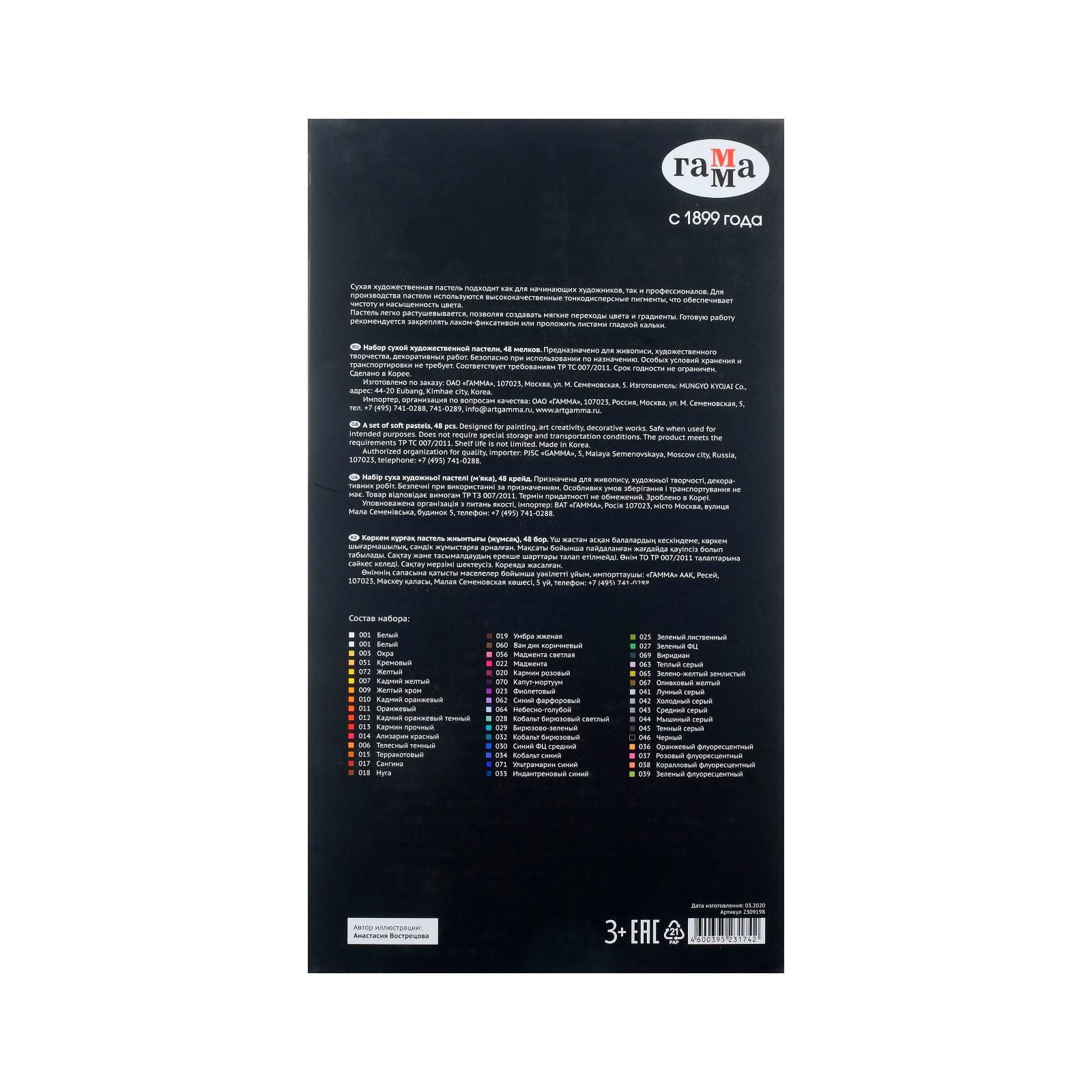 Пастель сухая, набор 48 цветов, «Гамма» «Старый мастер», базовые цвета /Корея/