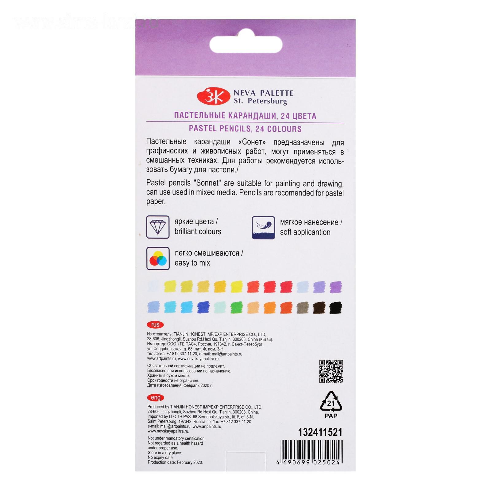 Пастель сухая в карандаше ЗХК "Сонет" набор 24 цвета