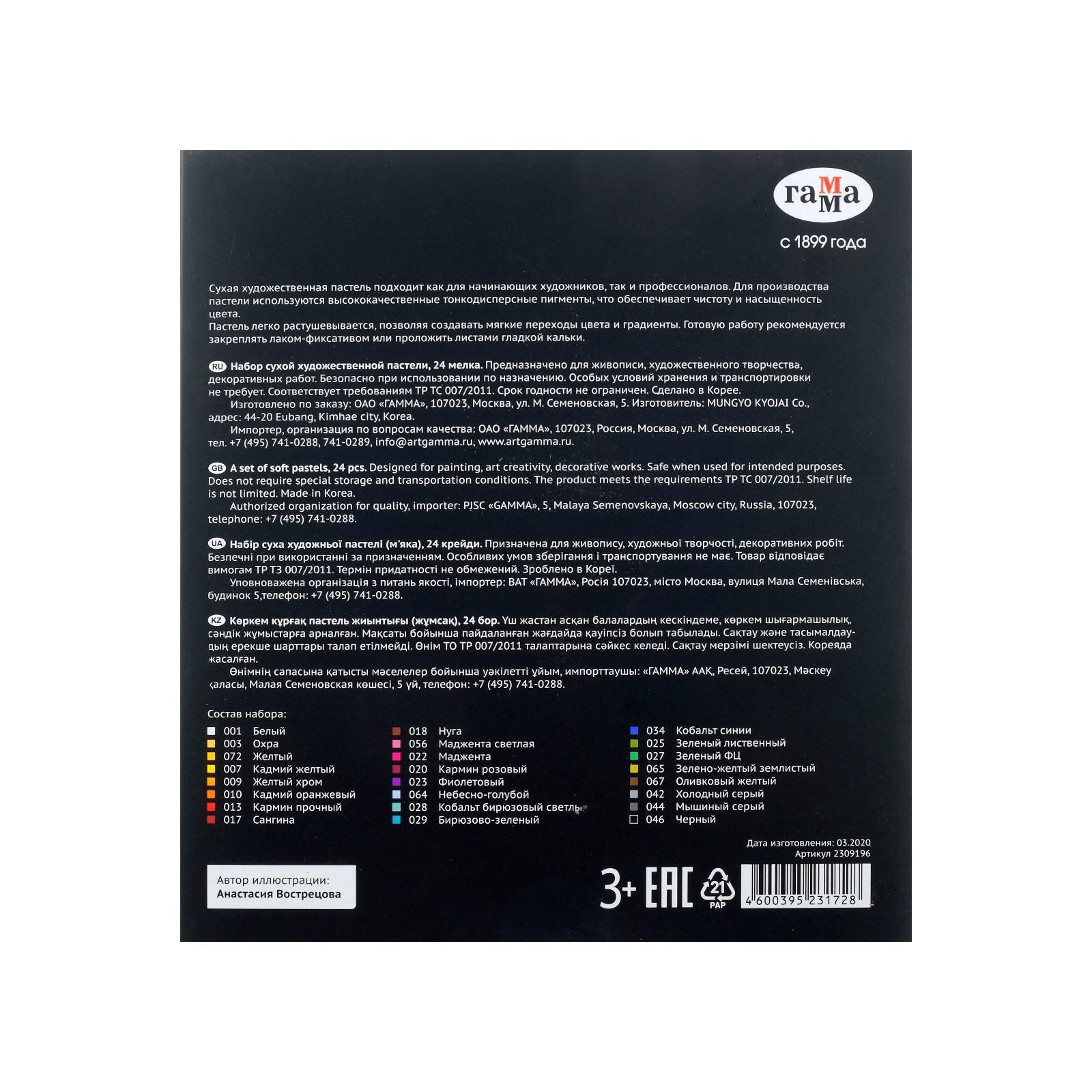 Пастель сухая, набор 24 цвета, «Гамма» «Старый мастер», базовые цвета /Корея/