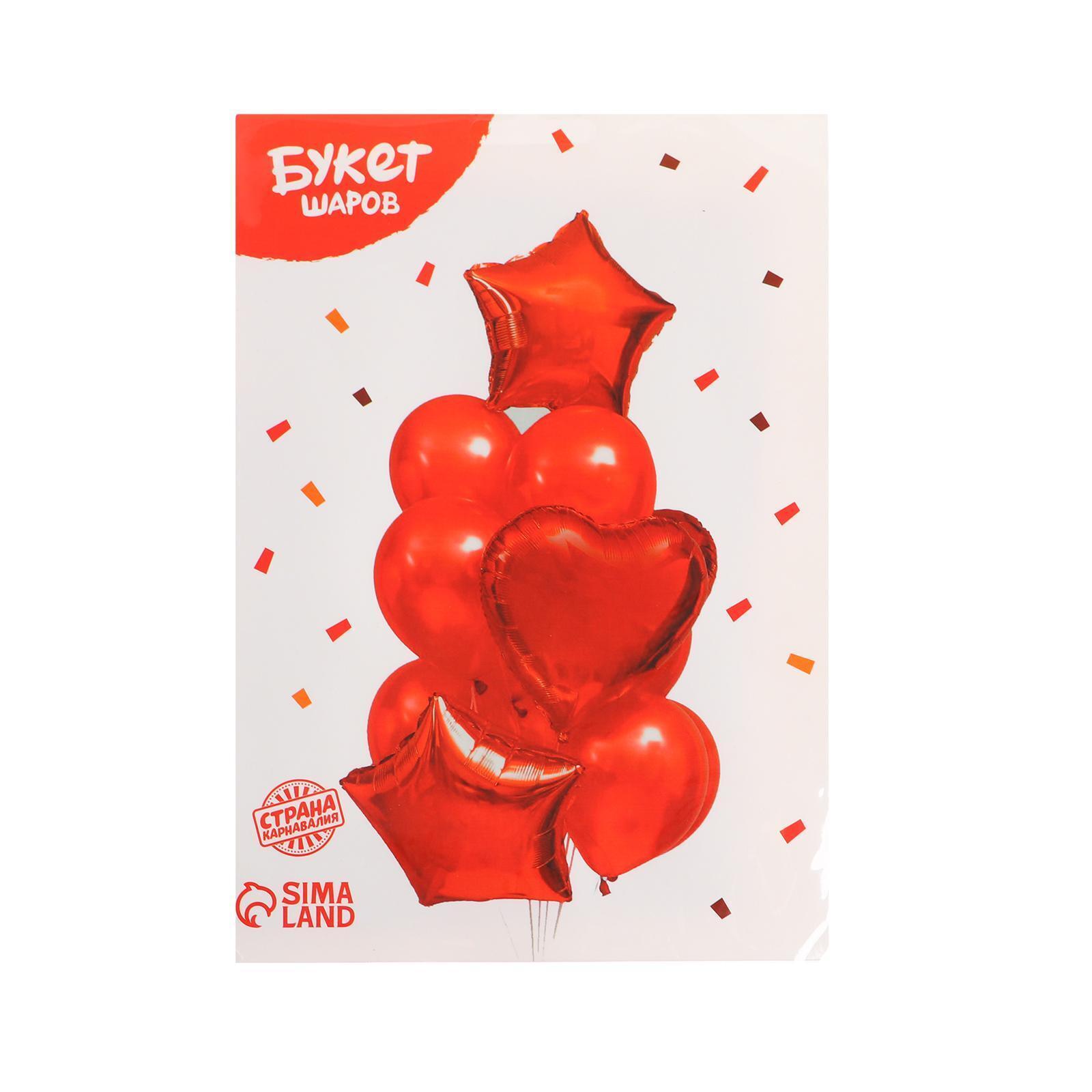 Букет из шаров «Сердца и звёзды», латекс, фольга, набор 14 шт., цвет красный