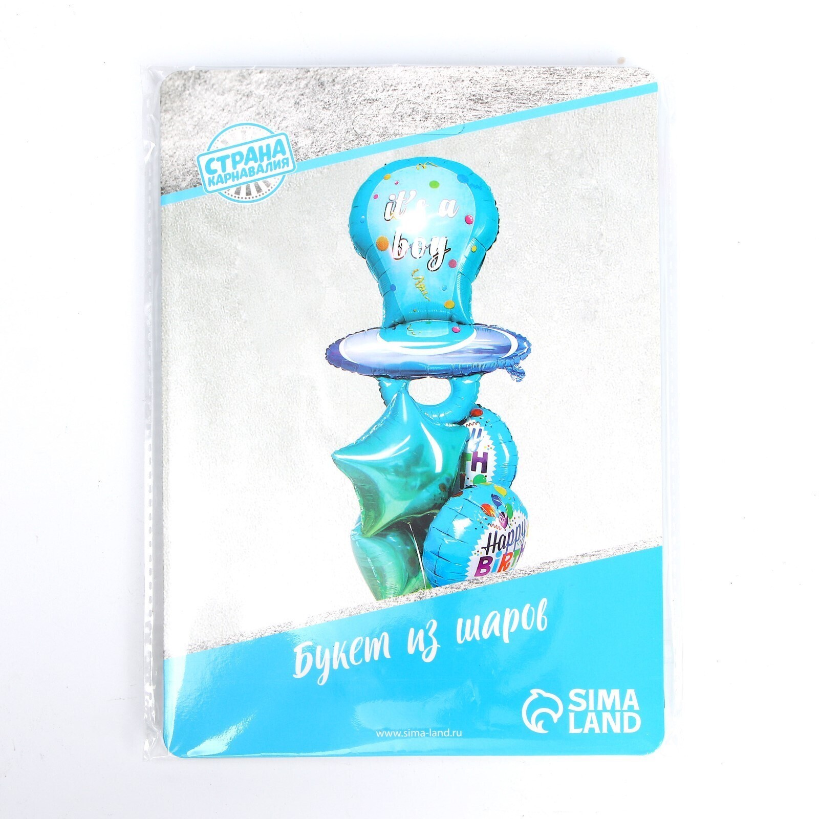 Букет из шаров «С соской. На выписку – мальчик», фольга, латекс, набор 5 шт.