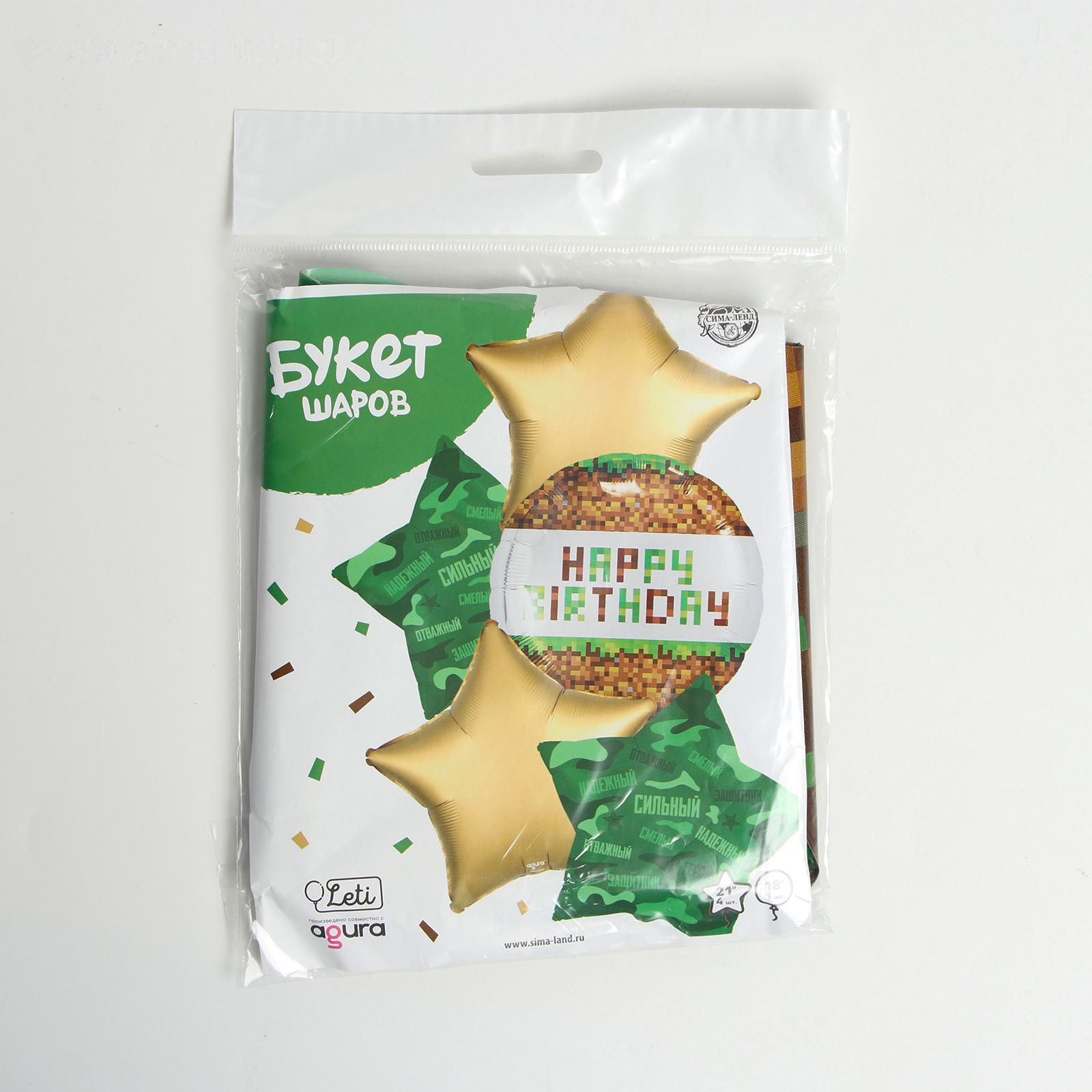 Букет из фольгированных шаров «С Днём рождения. Пиксели», набор 5 шт.