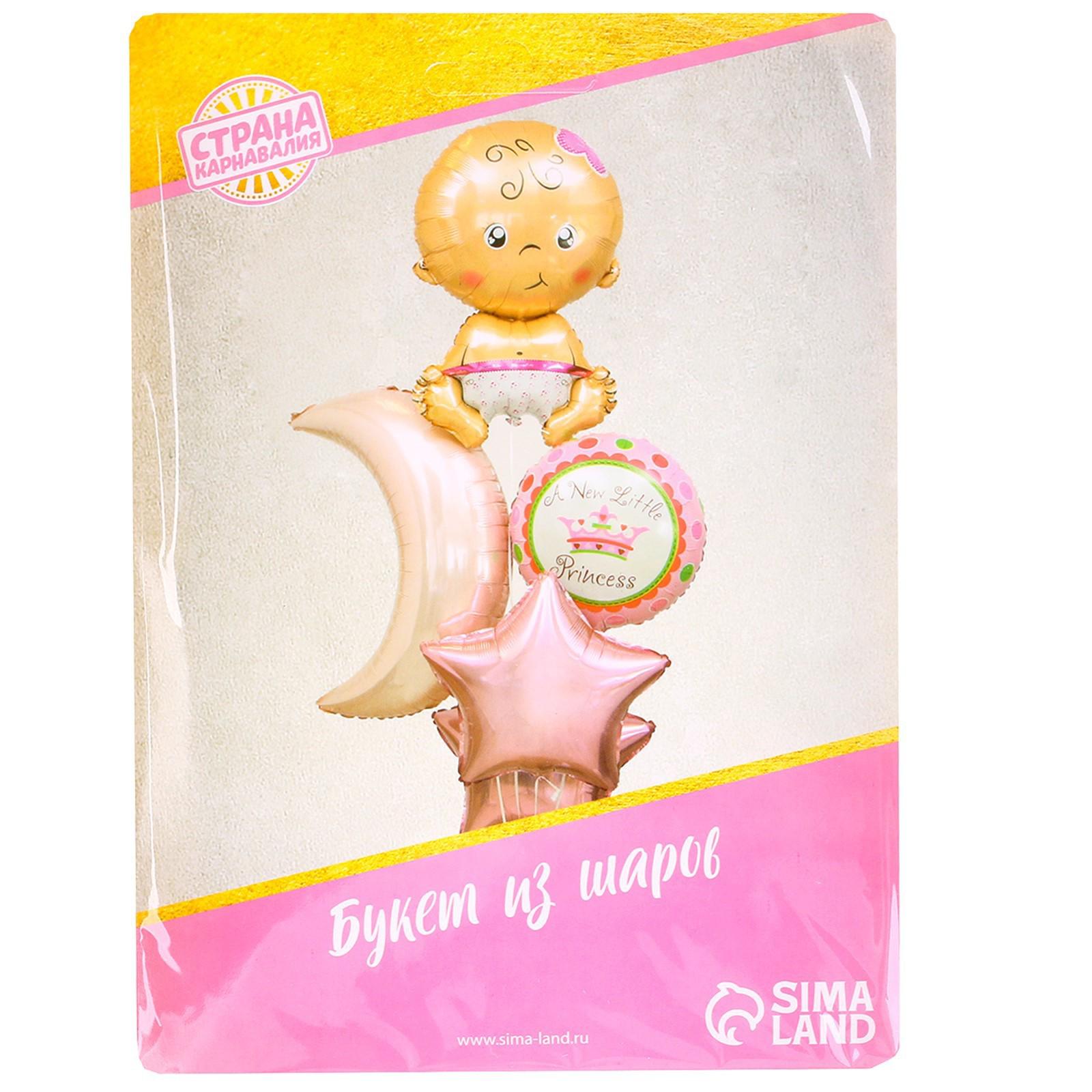 Букет из шаров «С рождением девочки», луна, звезда, младенец, фольга, набор 5 шт.