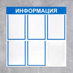 Информационный стенд "Информация" 6 карманов (5 плоских А4, 1 объемный А4), цвет синий