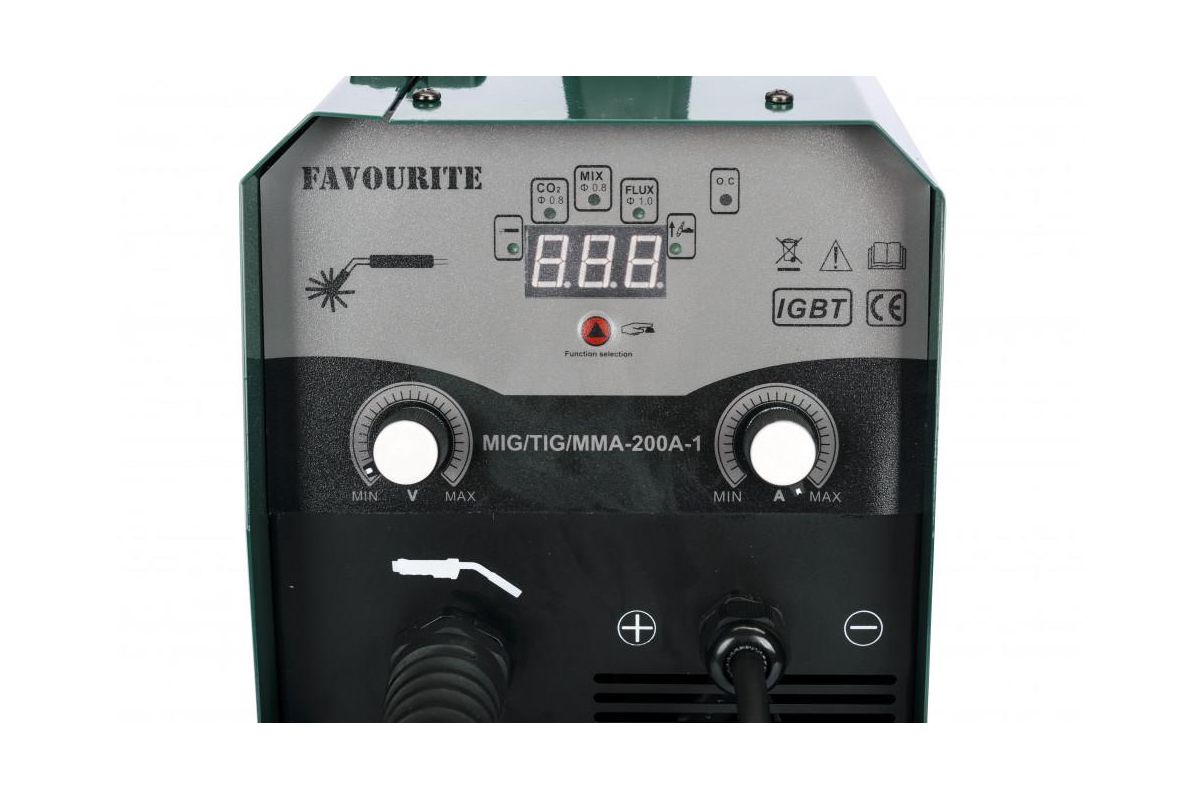 Сварочный инверторный аппарат FAVOURITE MIG/TIG/MMA-200A-1 полуав. сварка 200А, 1 кг