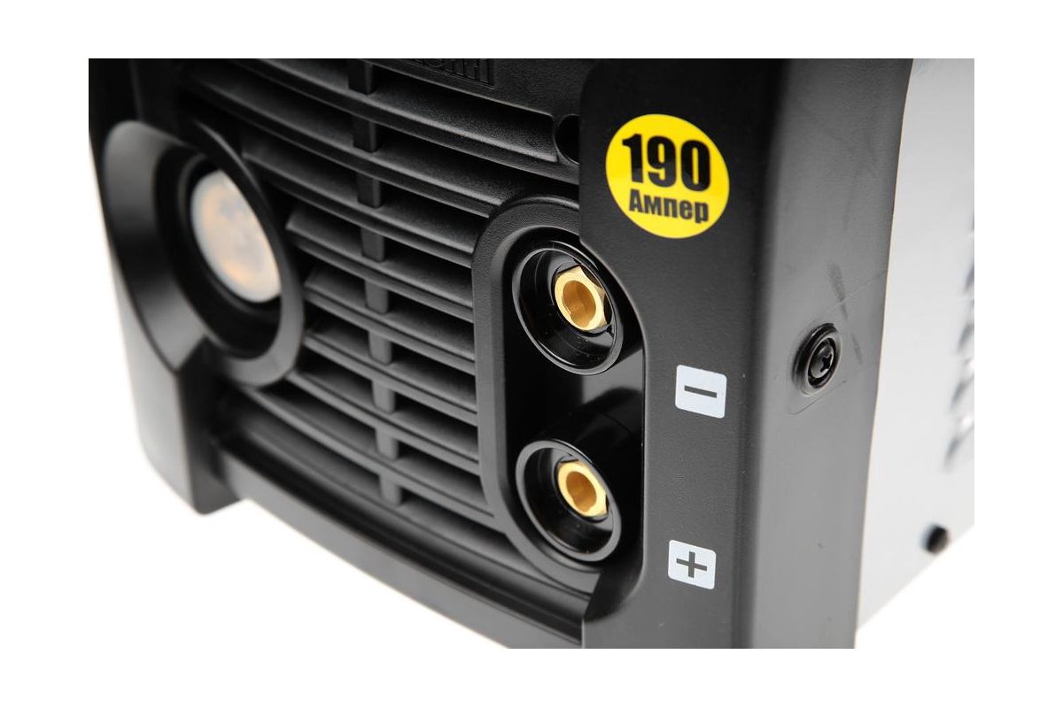 Макс. ток 190 А. Подходит для сварки проволокой диаметром до 1 мм и электродами до 4 мм.