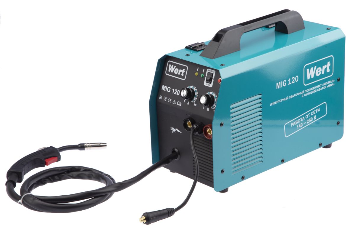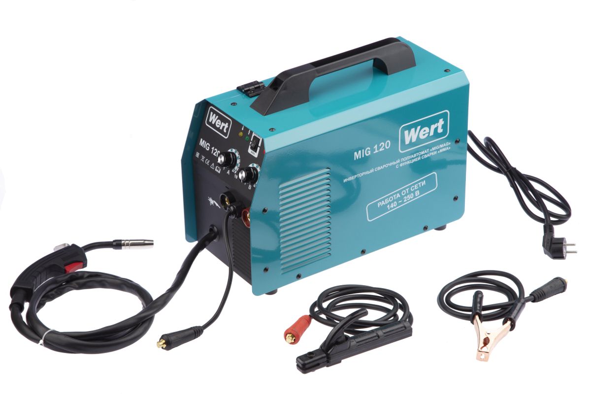 Сварка WERT MIG 120 (195060) 140-250В, 2.1кВт, 30-120A(MIG/MAG), 30-120А(MMA)