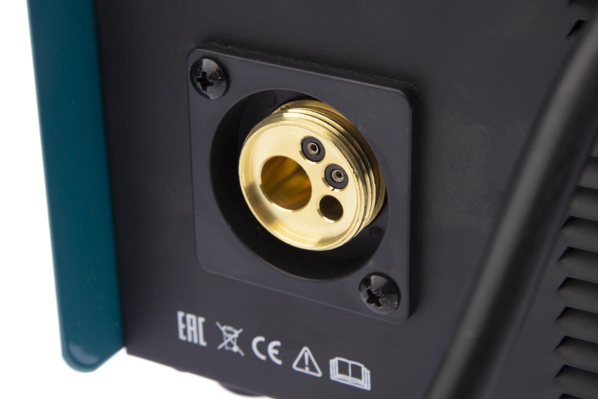 Аппарат расчитан на катушку с проволокой до 5кг. Катушка с проволокой устанавливается в специальный отсек внутрь корпуса аппарата. Горелка MIG/MAG съемная с ЕURO коннектором.