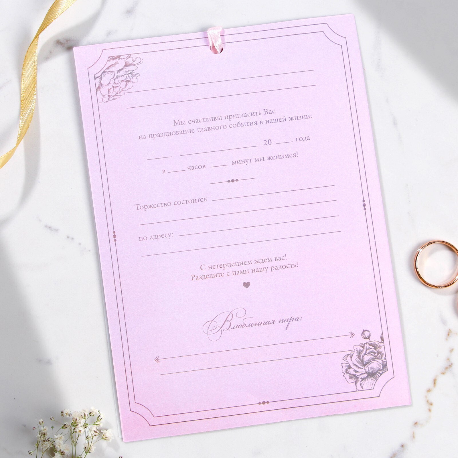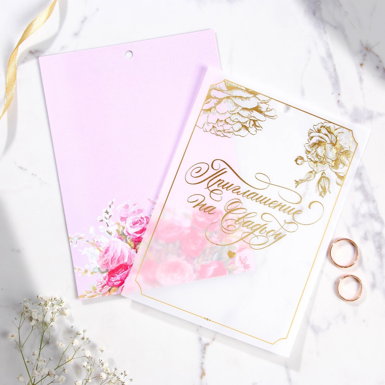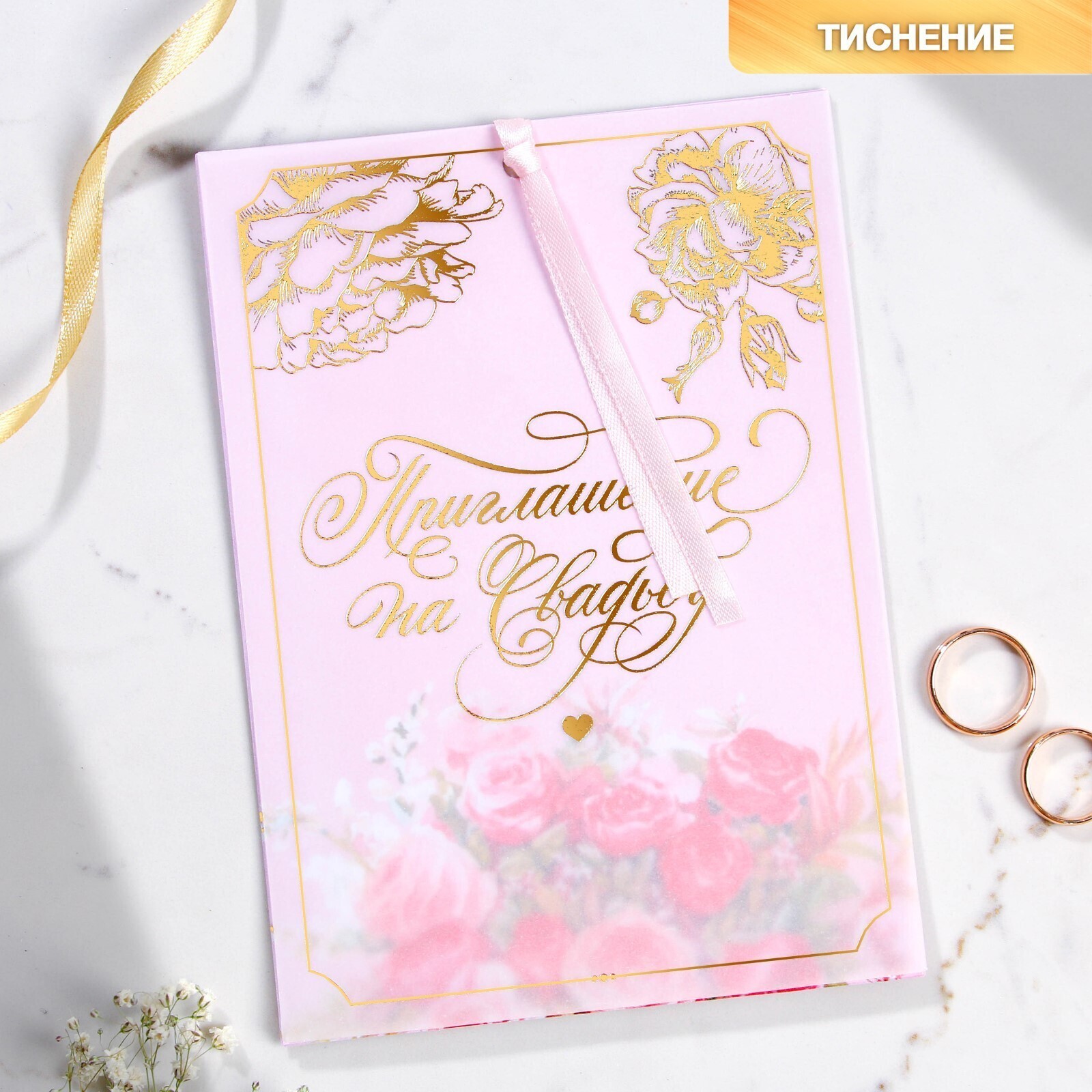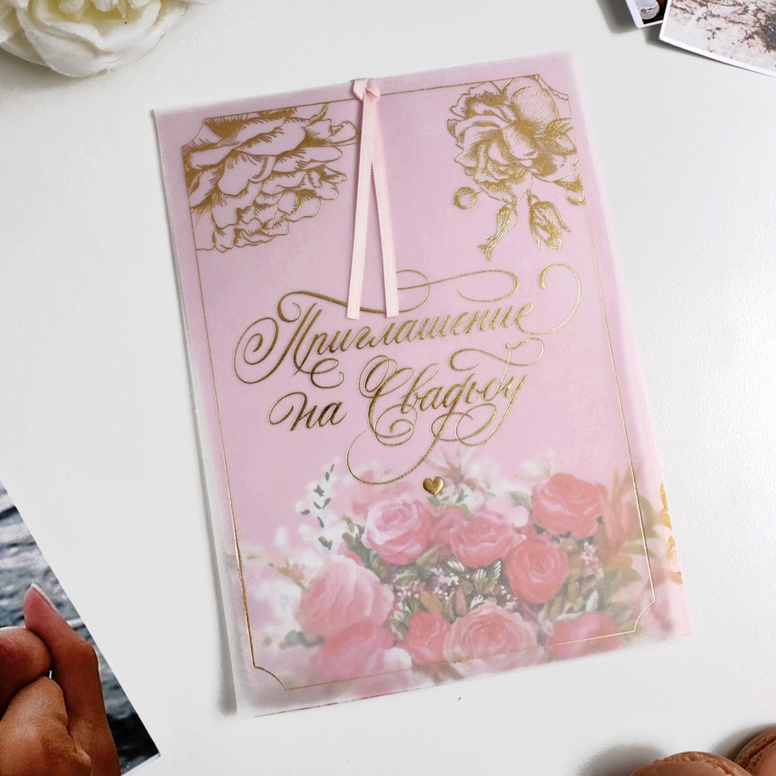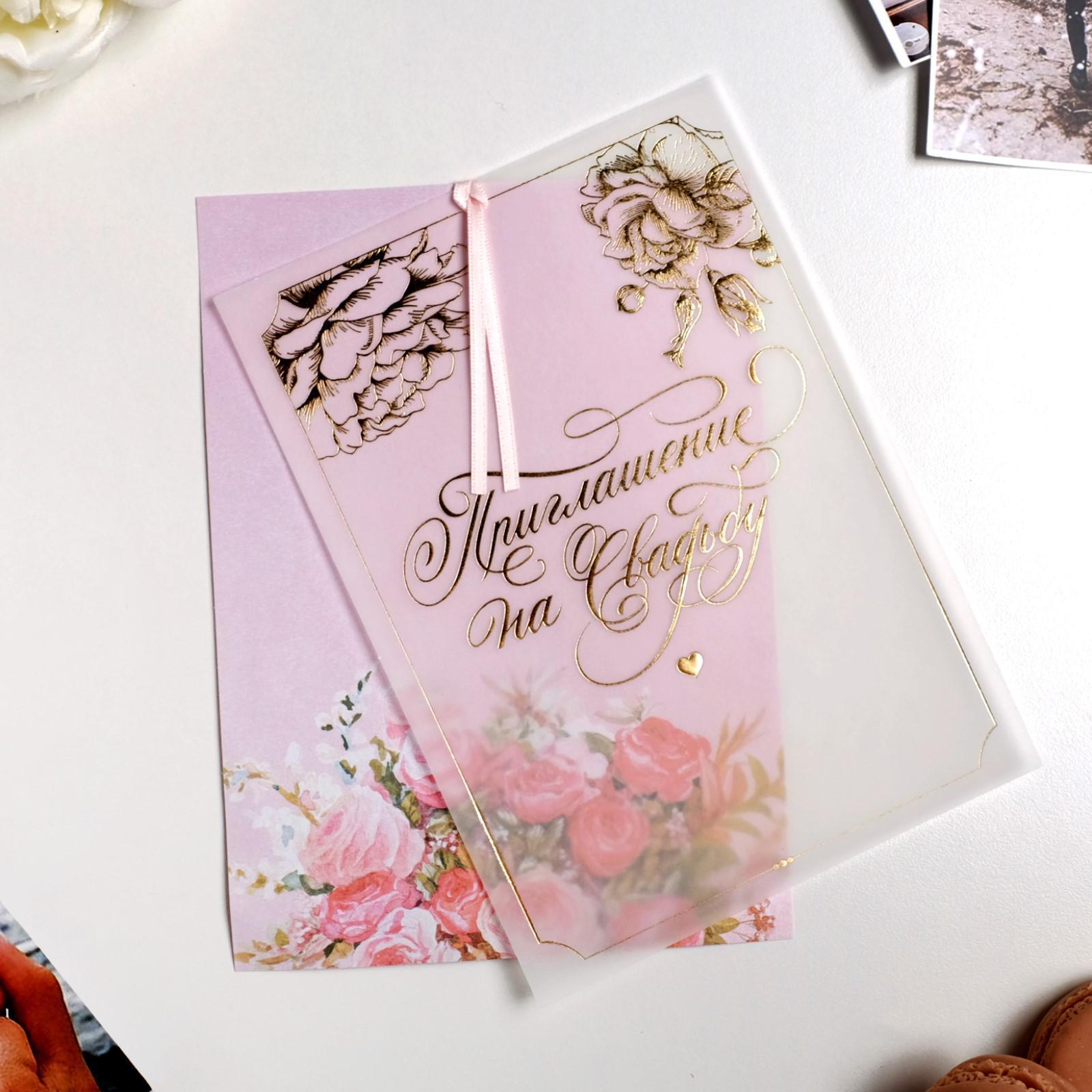 Приглашение на свадьбу с калькой «Розовые мечты», с тиснением