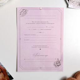 Когда дата и время бракосочетания уже известны, и вы определились со списком гостей, необходимо оповестить их о предстоящем празднике. Существует традиция делать персональные приглашения с указанием времени и даты мероприятия. Но перед свадьбой столько всего надо успеть, что на изготовление десятков открыток просто не остаётся времени. В этом случае вам придёт на помощь уникальное приглашение. Изделие выполнено из жемчужной бумаги плотностью 250 грамм, калька плотностью 120 грамм и дополнено тиснением.. Это придаёт дорогой и роскошный вид. Текст приглашения содержит свободные поля для имени адресата, времени, даты и адреса проведения мероприятия. Это потрясающее приглашение достойно стать частью такого важного события в жизни, как свадьба!