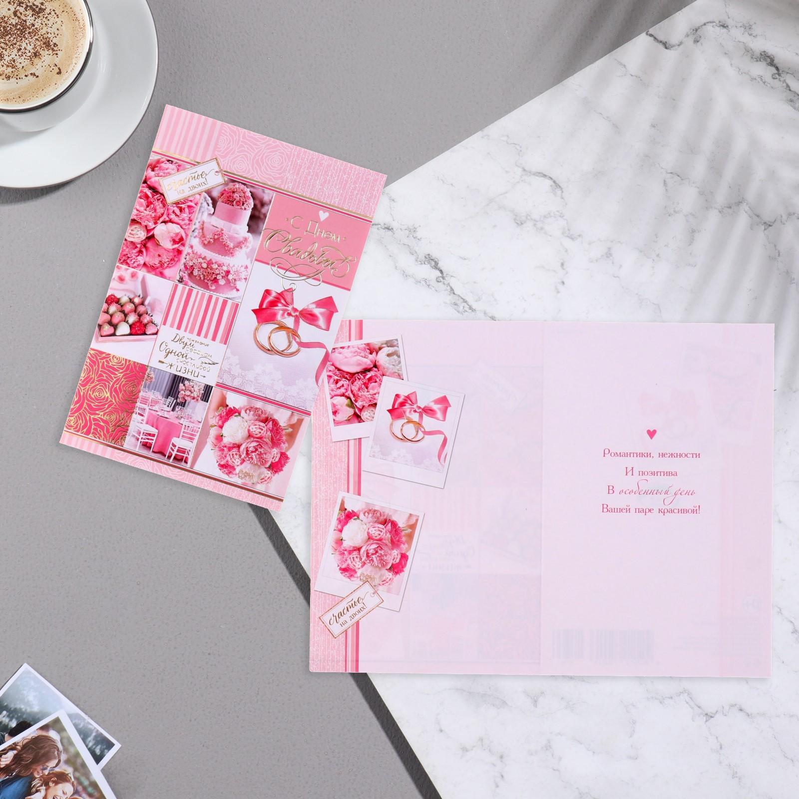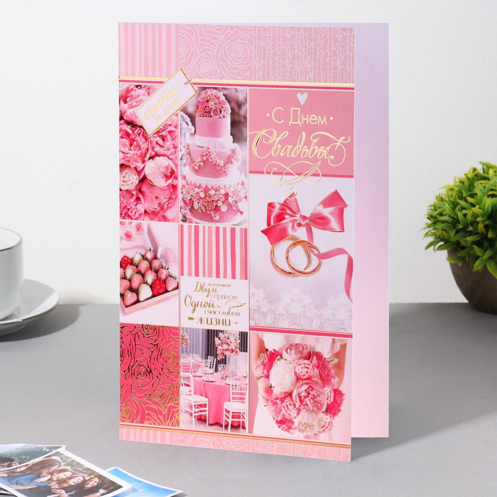 Открытка "С Днём Свадьбы! Счастье на двоих" розовые тона, 12,5х19 см