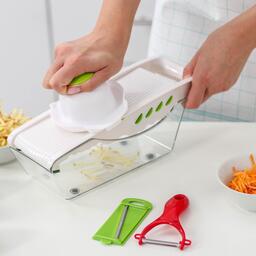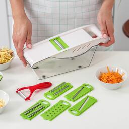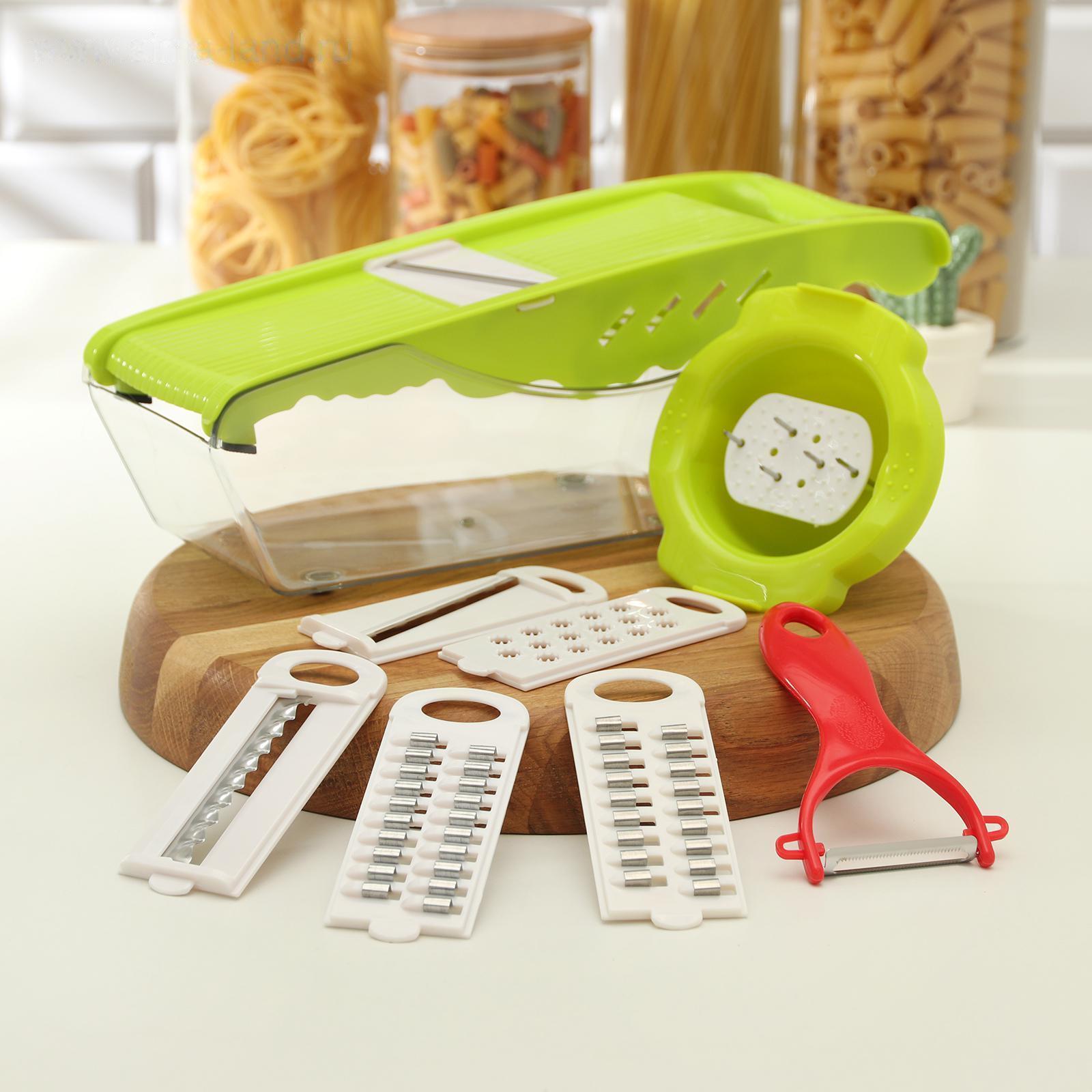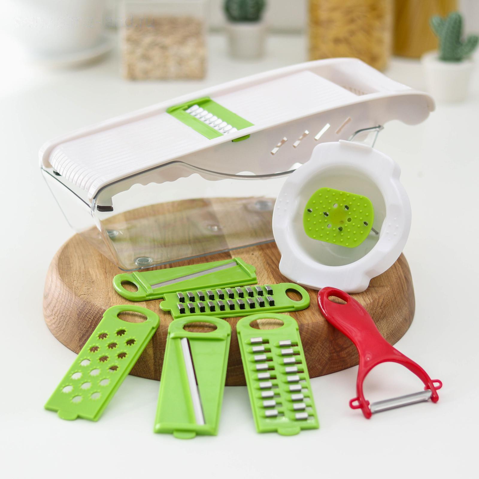 Тёрка с лотком Vegan, 6 насадок, овощечистка металлическая, цвет красный