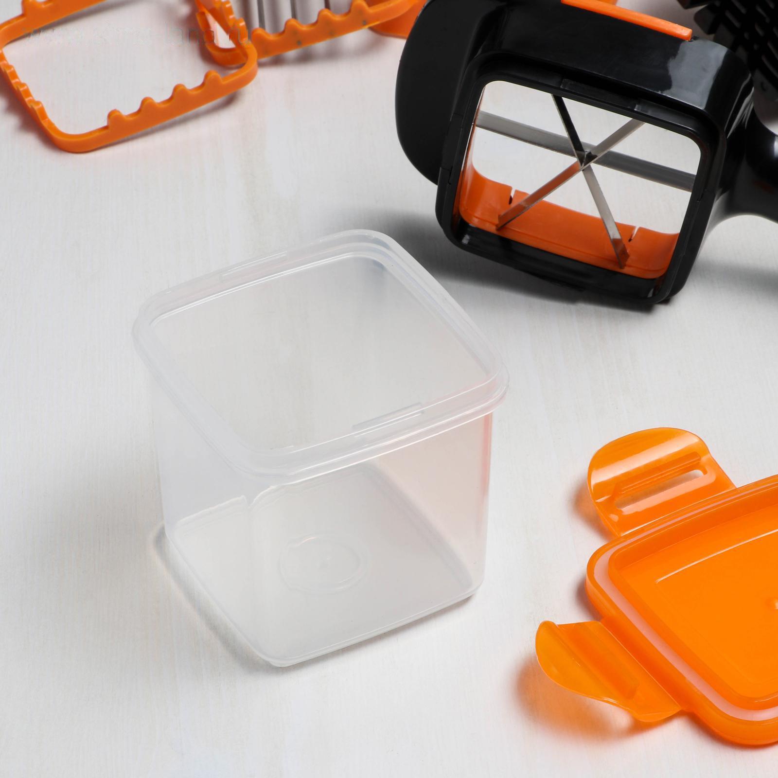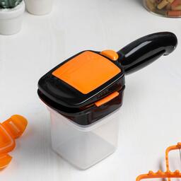 С этой овощерезкой вы быстро измельчите картошку, огурцы, помидоры, кабачки, перец, лук, яйца, различные фрукты и многое другое. Можно резать прямо на сковороду, блюдо или кастрюлю! Положите ингредиент в щипцы-слайсер, нажмите и получите ровные кусочки. Подходит для твёрдых и мягких продуктов. В наборе имеется пластиковый контейнер с крышкой для пищи.