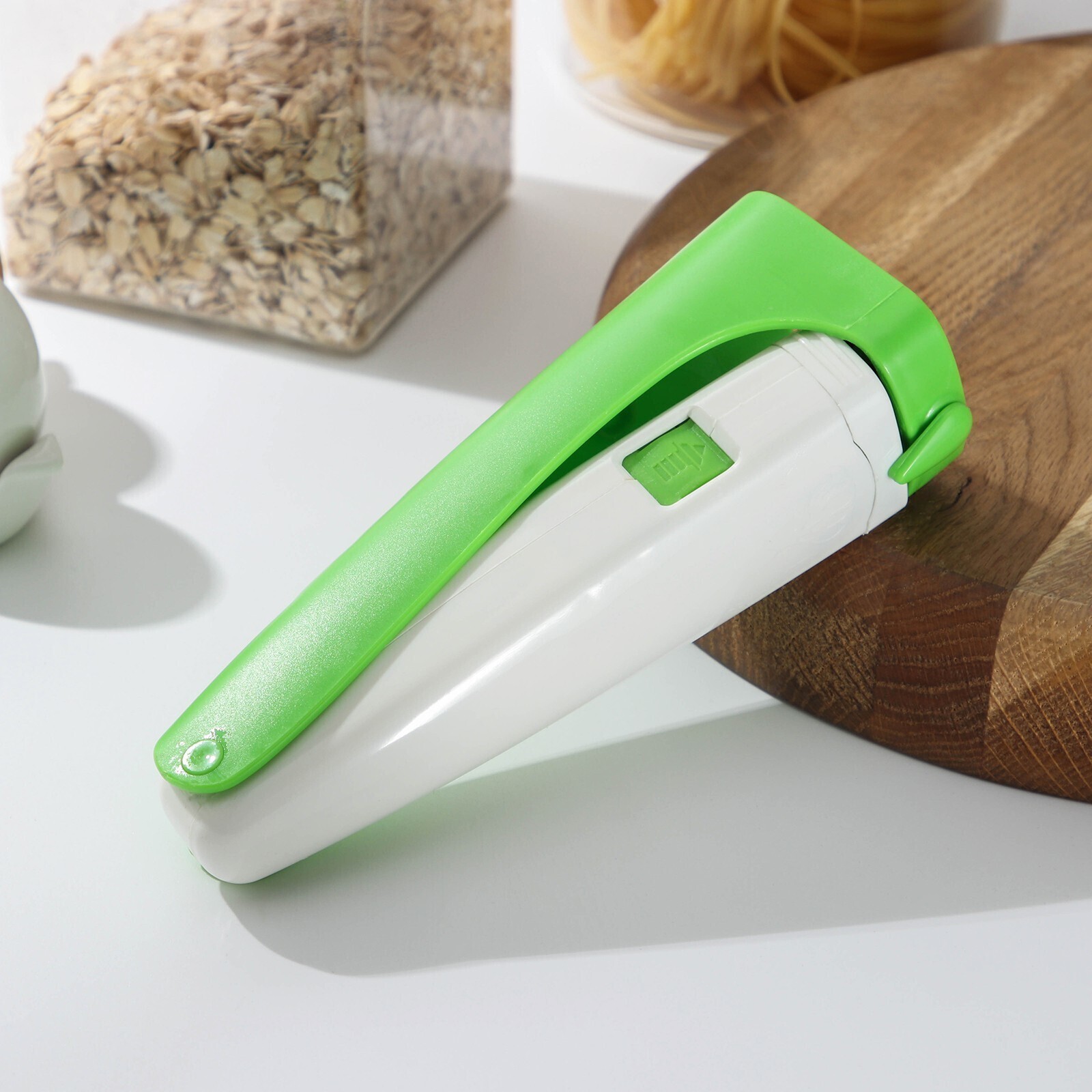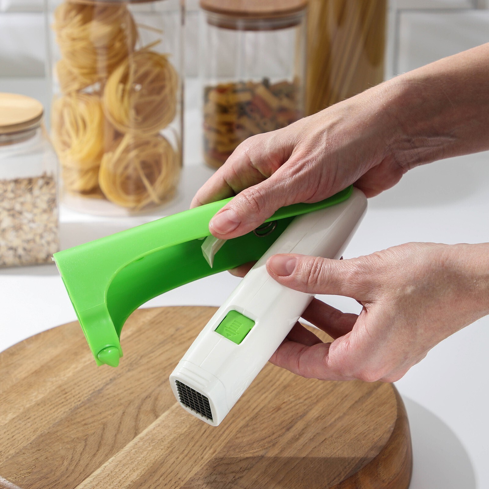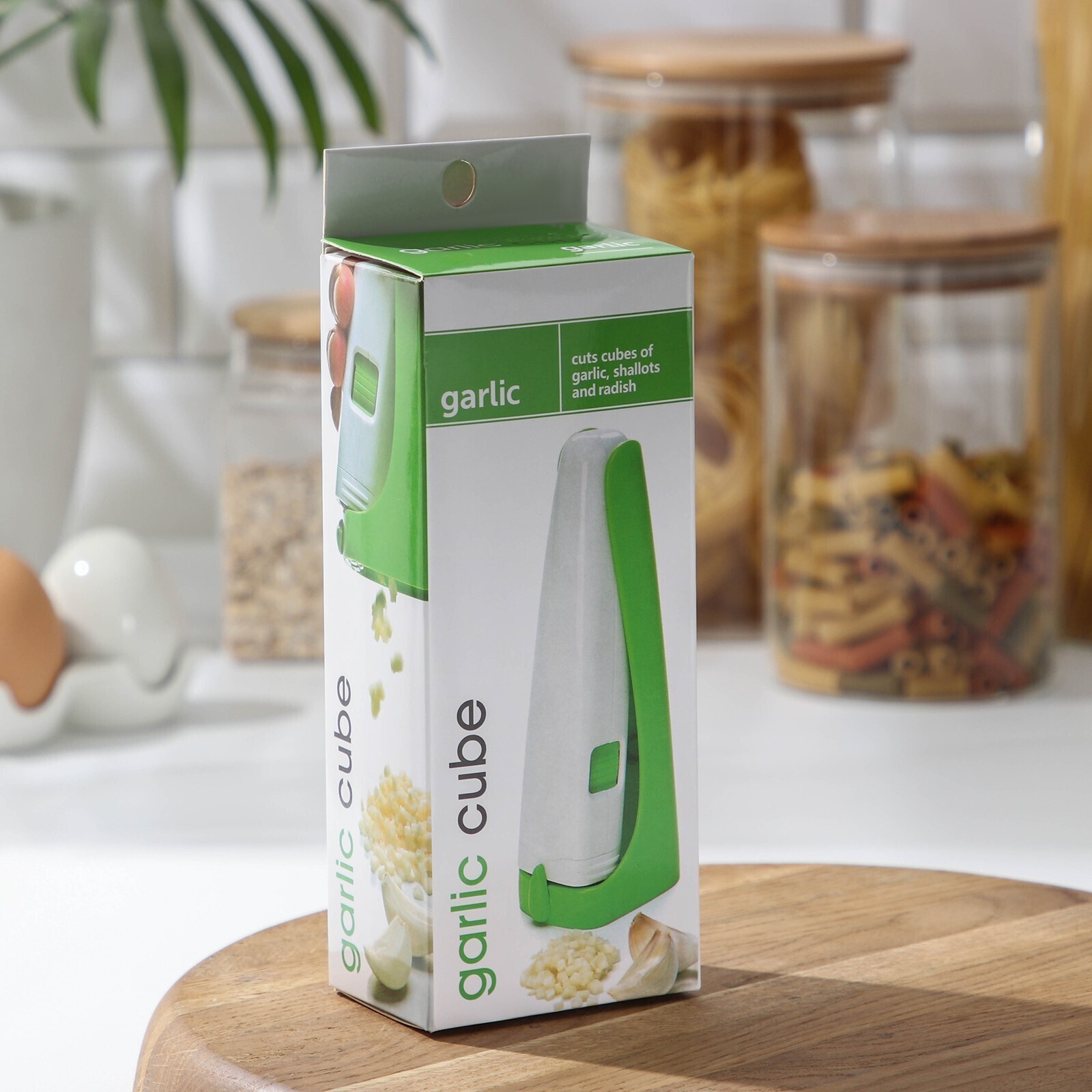 Чеснок содержит много витаминов, а также является средством для профилактики от простуды. В блюдах чеснок придаёт особенный аромат. С помощью измельчителя вы с лёгкостью нарежете большое количество зубчиков. Пользоваться прибором просто: почистите чеснок от кожуры, затем положите пару зубчиков внутрь измельчителя. Зафиксируйте закрытое положение измельчителя, а дальше нажимайте на белый корпус, чтобы нашинковать чеснок.