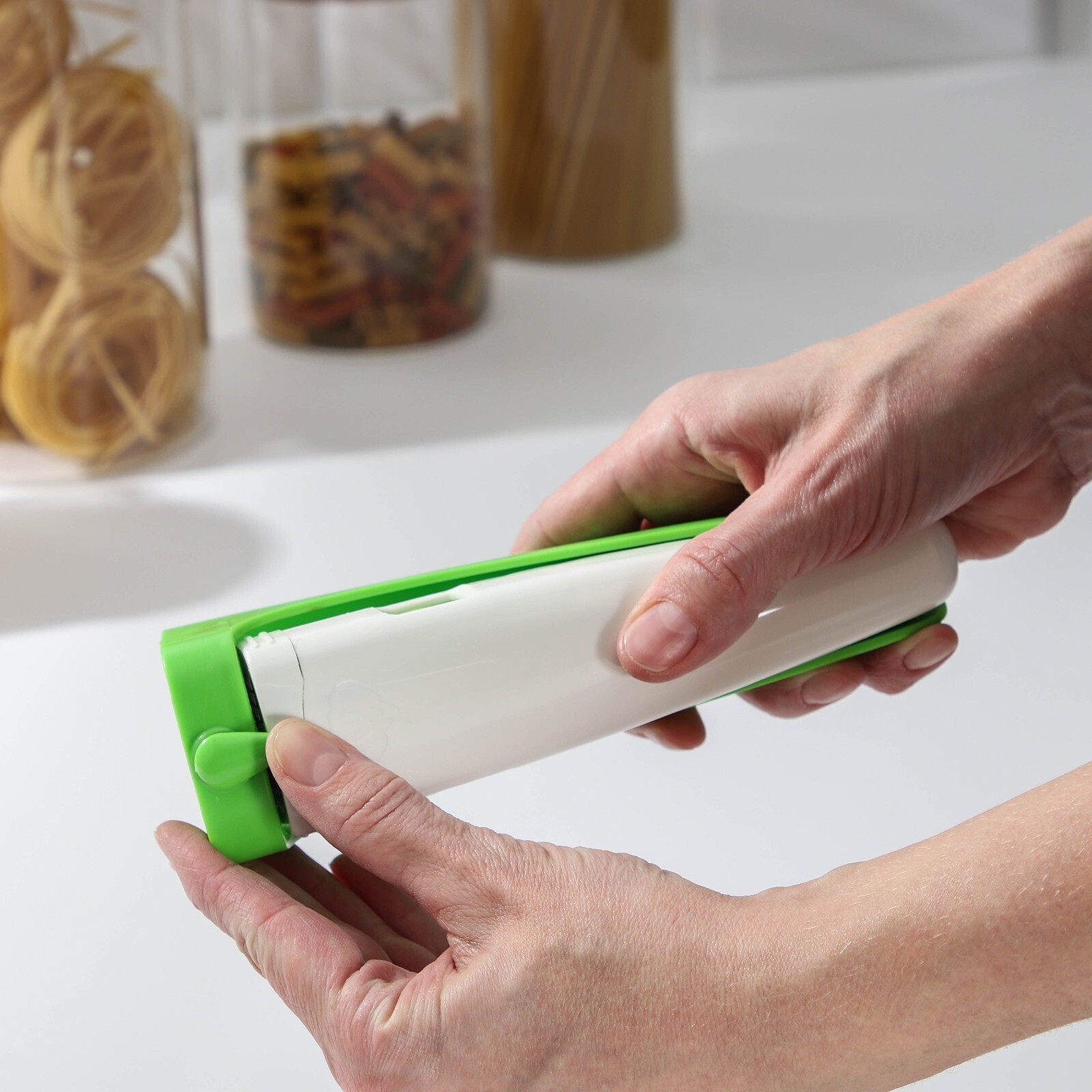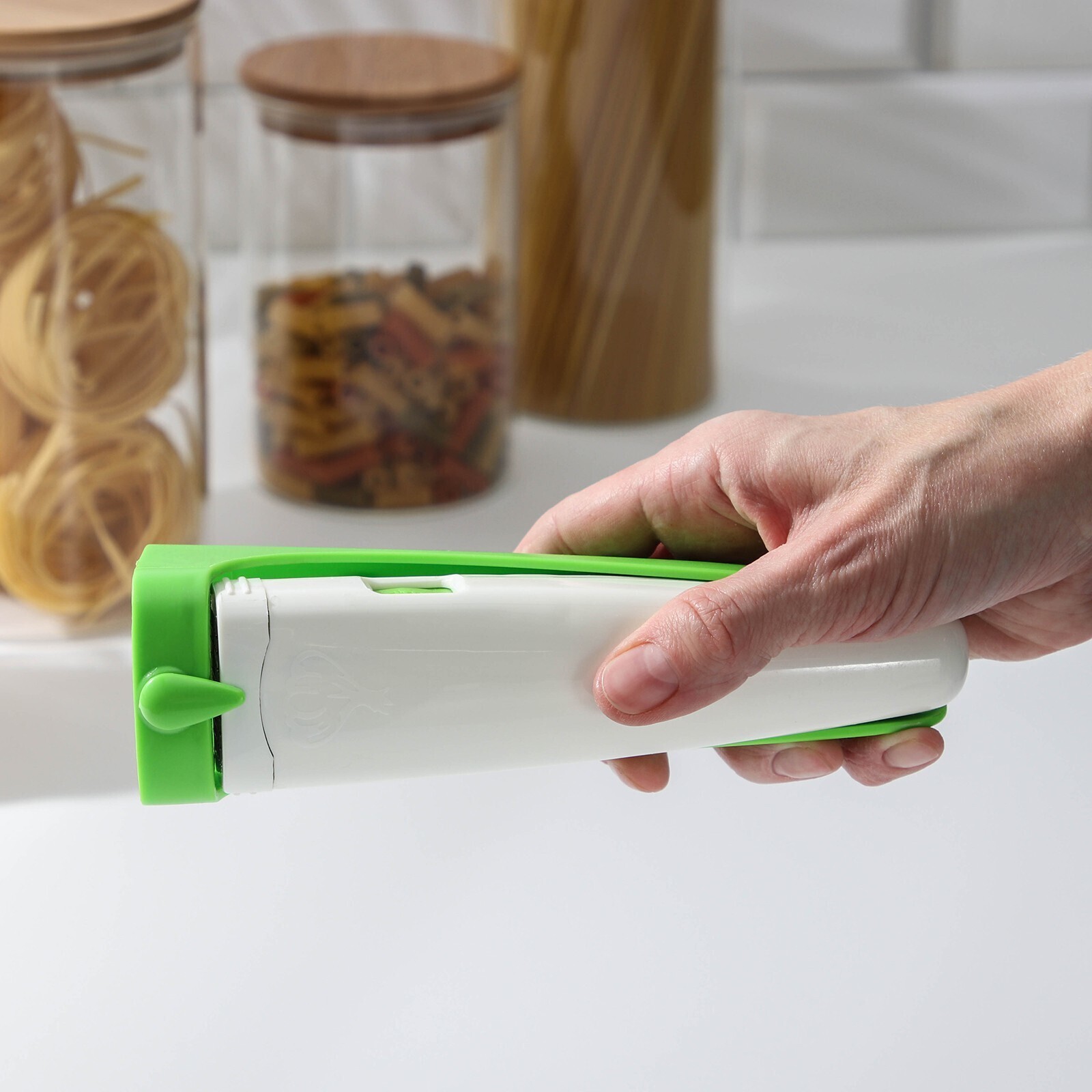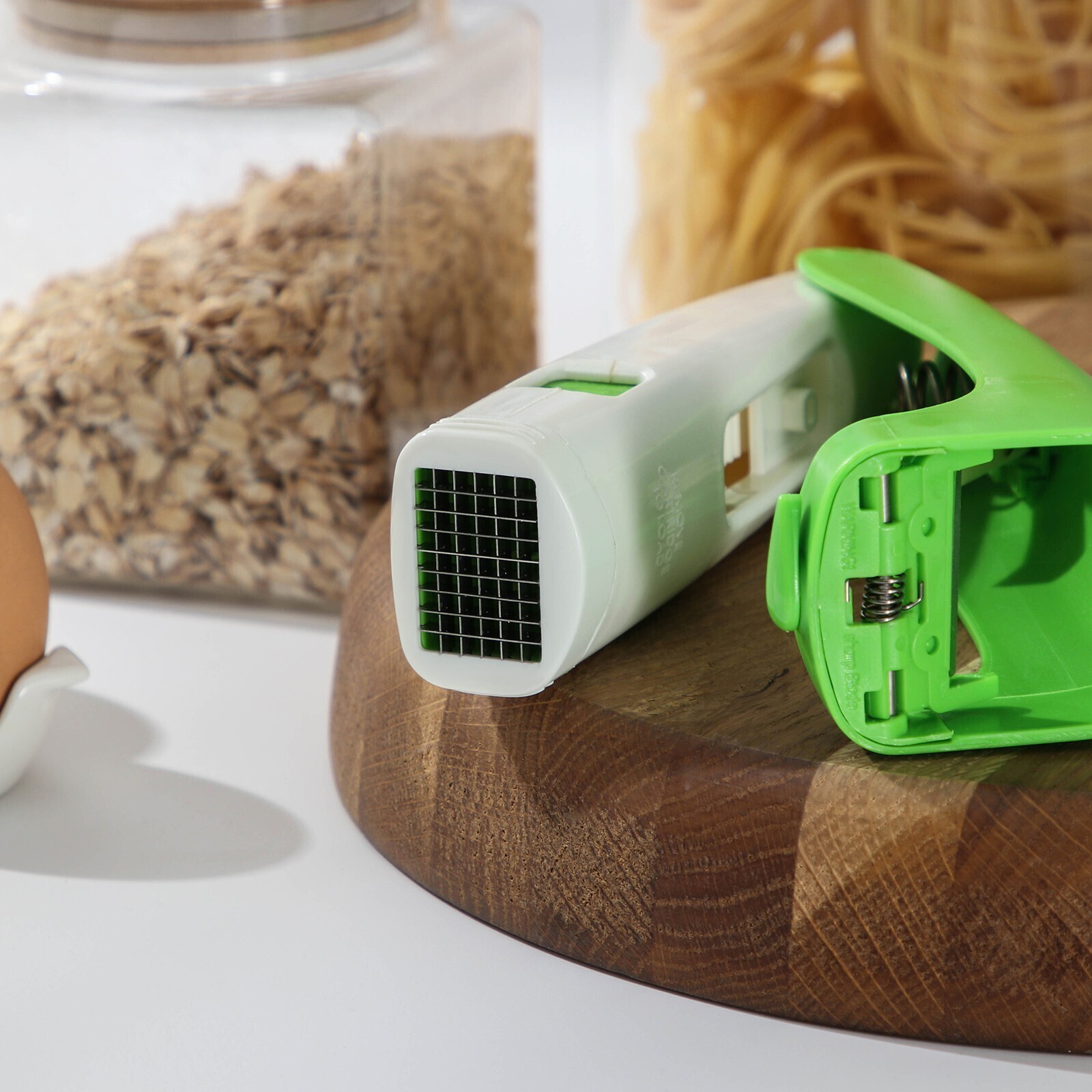 Чеснок содержит много витаминов, а также является средством для профилактики от простуды. В блюдах чеснок придаёт особенный аромат. С помощью измельчителя вы с лёгкостью нарежете большое количество зубчиков. Пользоваться прибором просто: почистите чеснок от кожуры, затем положите пару зубчиков внутрь измельчителя. Зафиксируйте закрытое положение измельчителя, а дальше нажимайте на белый корпус, чтобы нашинковать чеснок.